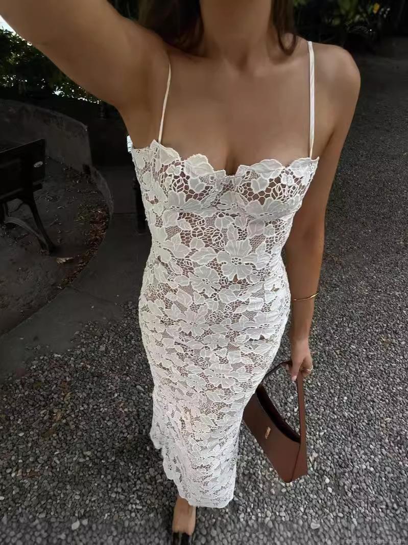 • Women's Sexy Floral Lace Maxi Dress Elegant Spaghetti Straps Sleeveless Hollow Out Slim Fit Long Dress For Evening Party Vacation Clubwear