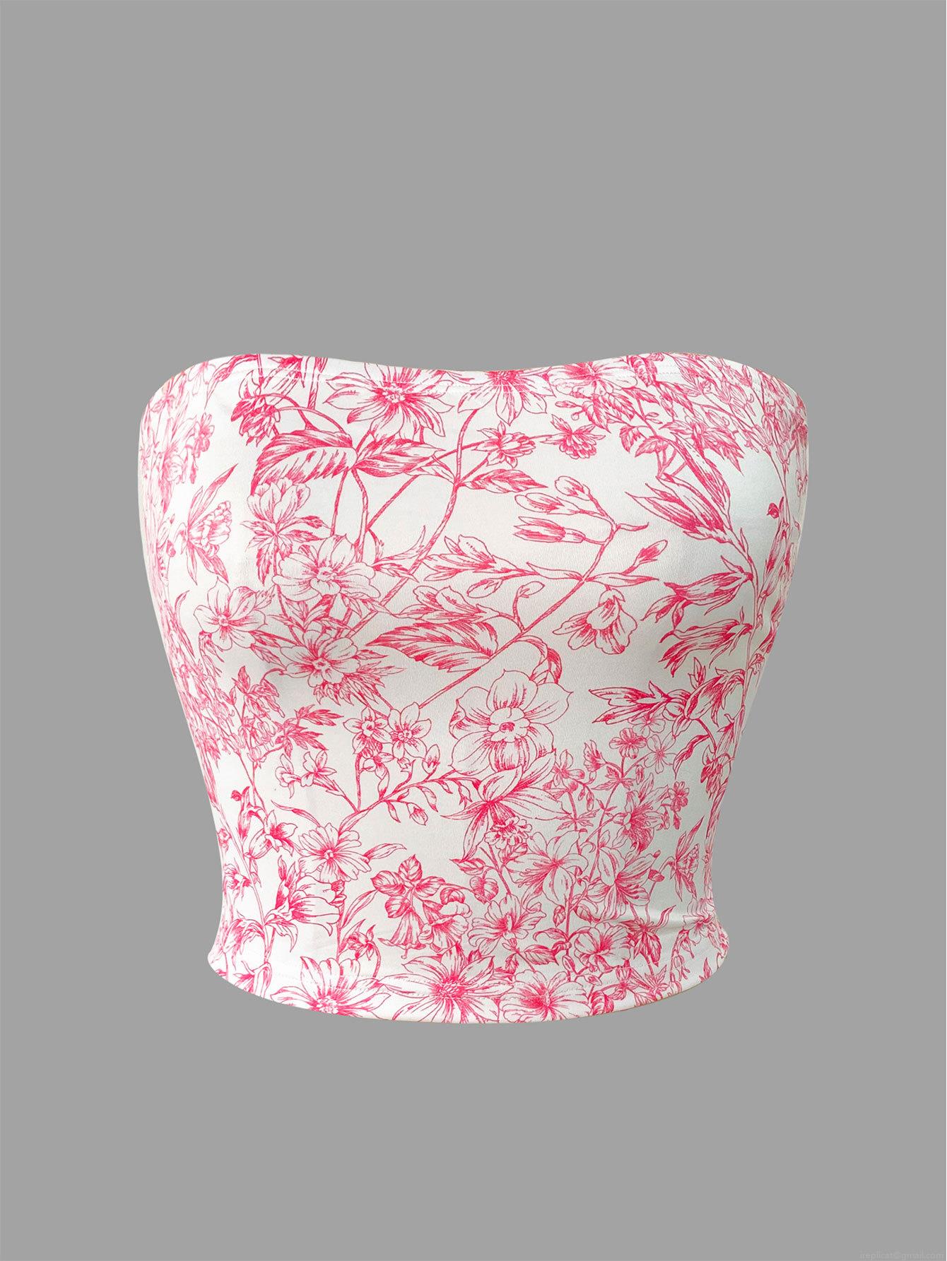 • Women's Sexy Floral Print Tube Top Strapless Cropped Tank Top Vintage Slim Fit Backless Spice Girl Style Polyester Summer Resort Party Vest