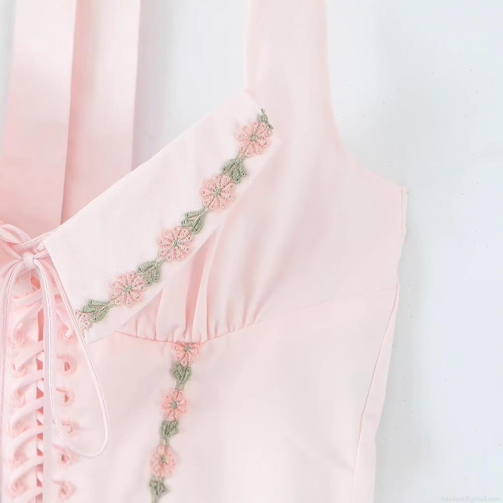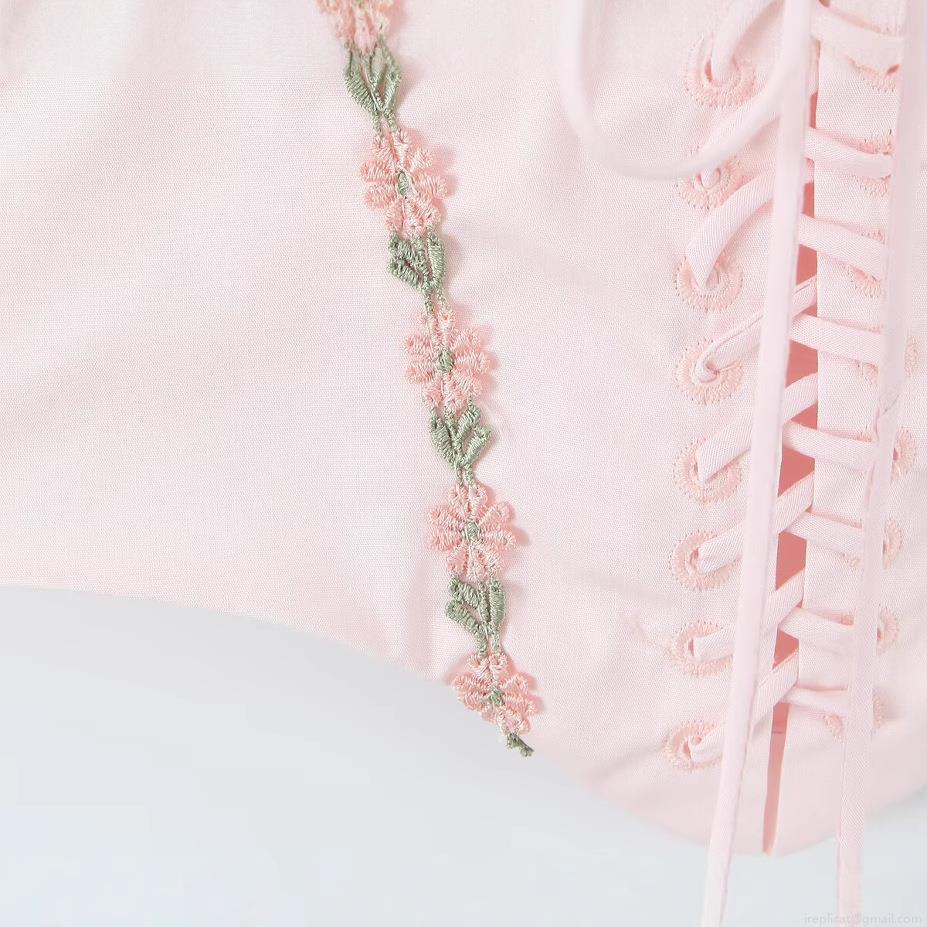 Floral, Embroidery, Fishbone, Neckband, Lace, Cross Straps, Corset