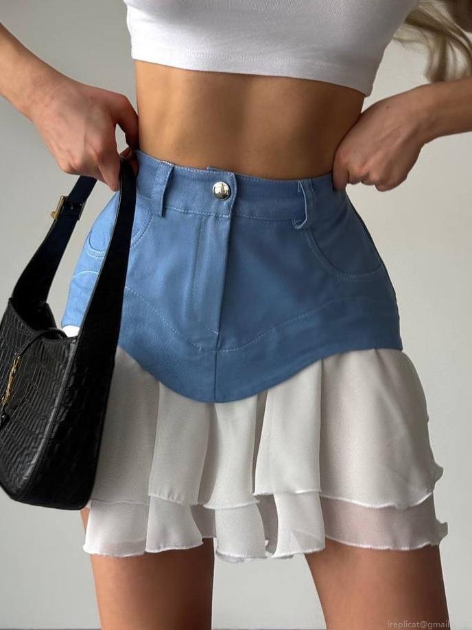 • Women's Sexy High Waist Patchwork Mini Skirt Irregular Layered Ruffle Pleated Short Skirt Woven Slim Fit Streetwear Bottoms