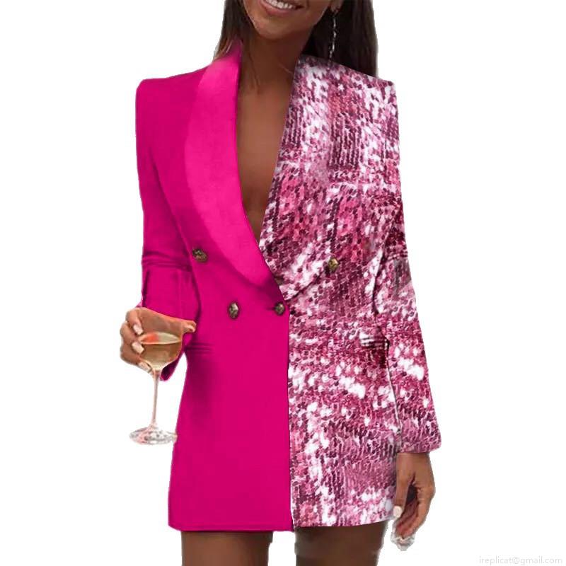 • Women's Sexy Patchwork Sequin Blazer Dress Deep V-Neck Long Sleeve Double Breasted Mini Dress For Party Banquet Commute Fashion Slim Fit Short Dress