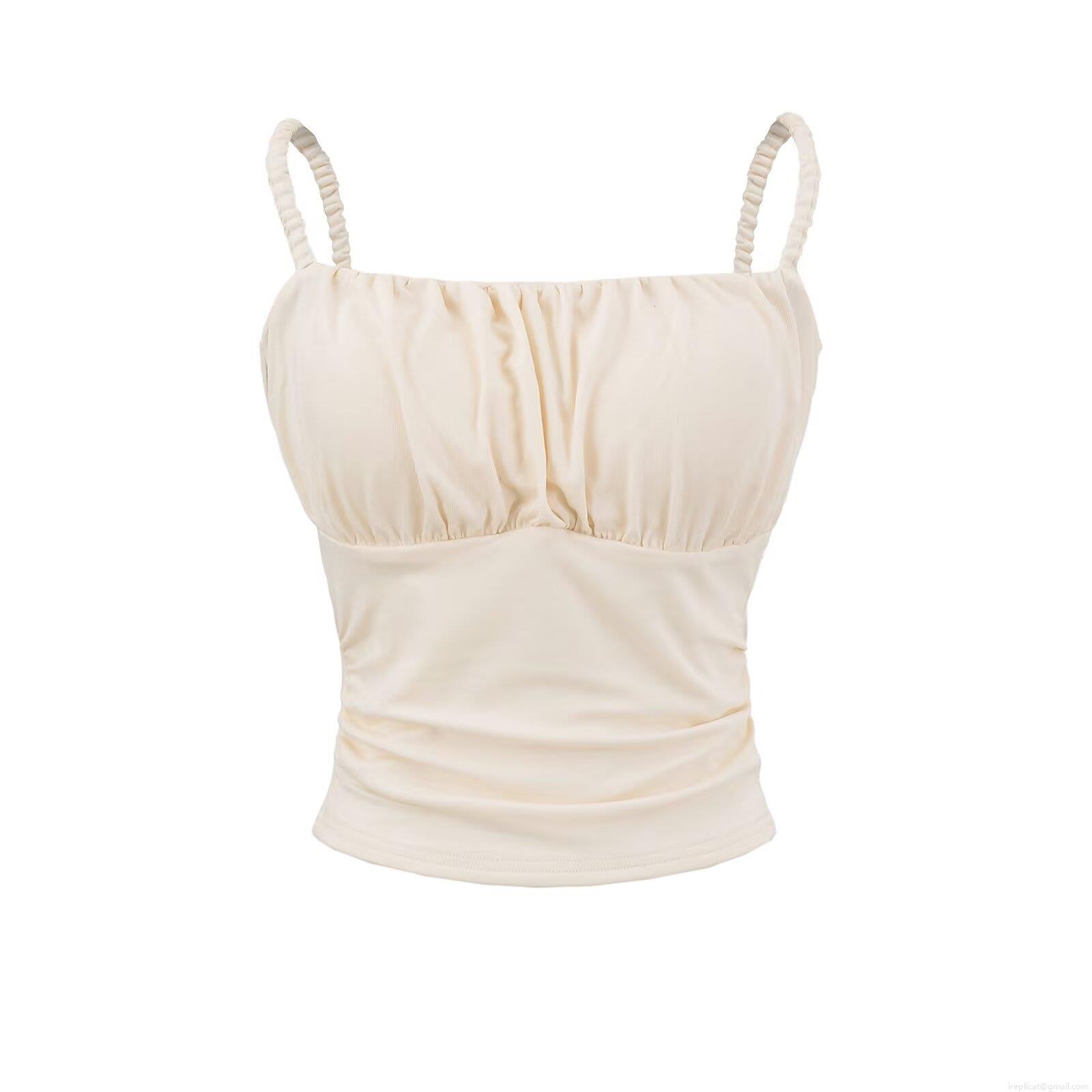 Women's Sexy Ruched Crop Tank Top With Built-in Chest Pads 95% Rayon 5% Spandex Spaghetti Strap Backless Slim Fit Sleeveless Cami Top For Summer Party Daily Clothing