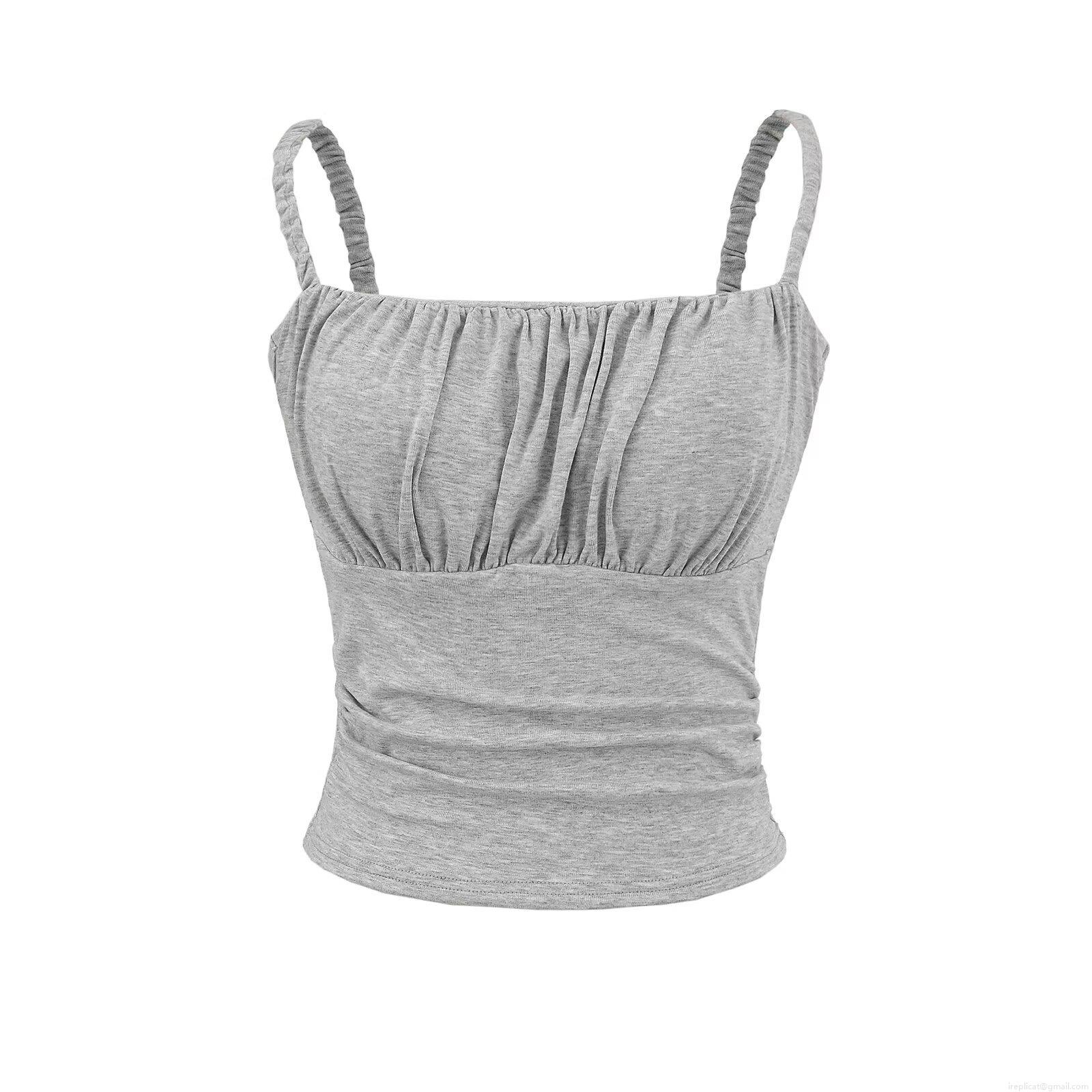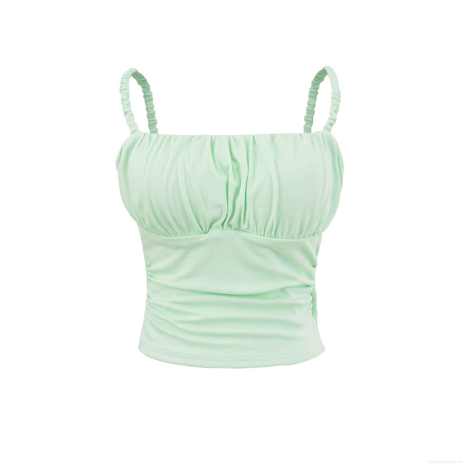 • Women's Sexy Ruched Crop Tank Top With Built-in Chest Pads 95% Rayon 5% Spandex Spaghetti Strap Backless Slim Fit Sleeveless Cami Top For Summer Party Daily Clothing