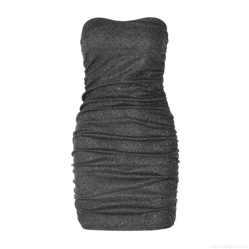 Solid Color, Sequin, Pleats, Backless, Strapless