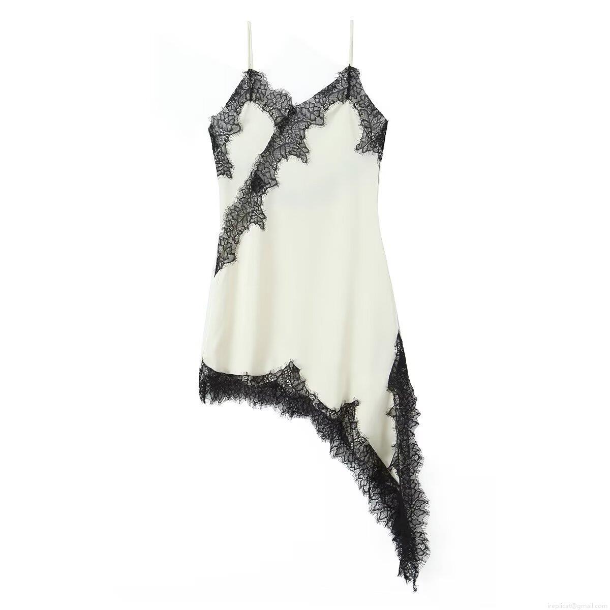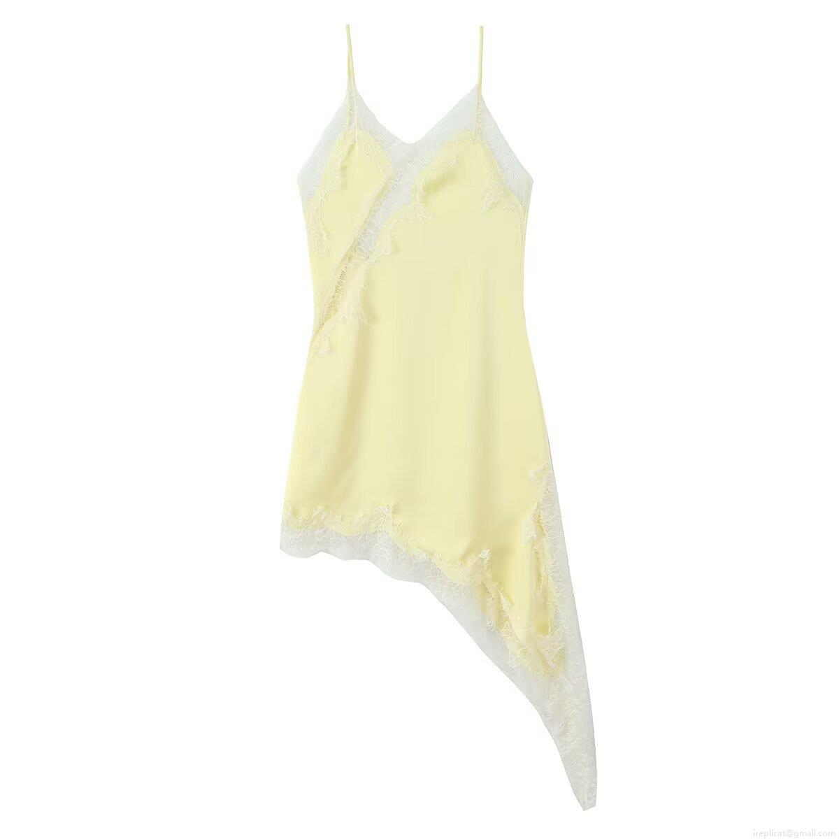 Women's Sexy Satin Lace Patchwork Spaghetti Strap Dress Asymmetric Hem V-Neck Sleeveless Nightdress Elegant Slip Dress For Party Club Nightwear