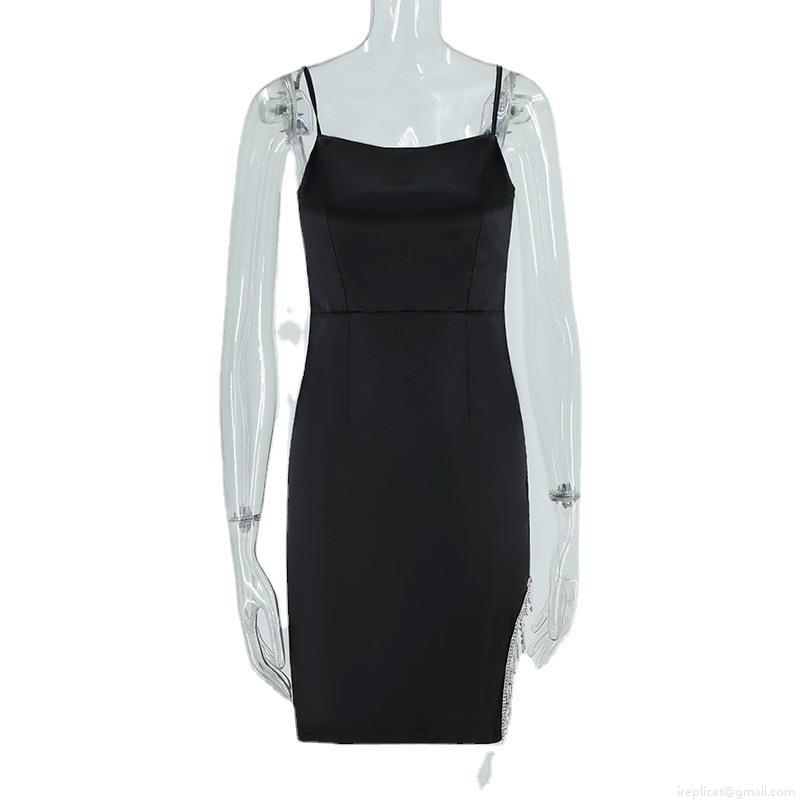 • Women's Sexy Satin Spaghetti Strap Mini Dress With Rhinestone Tassel Side Split Bodycon Backless Evening Party Night Club Dress