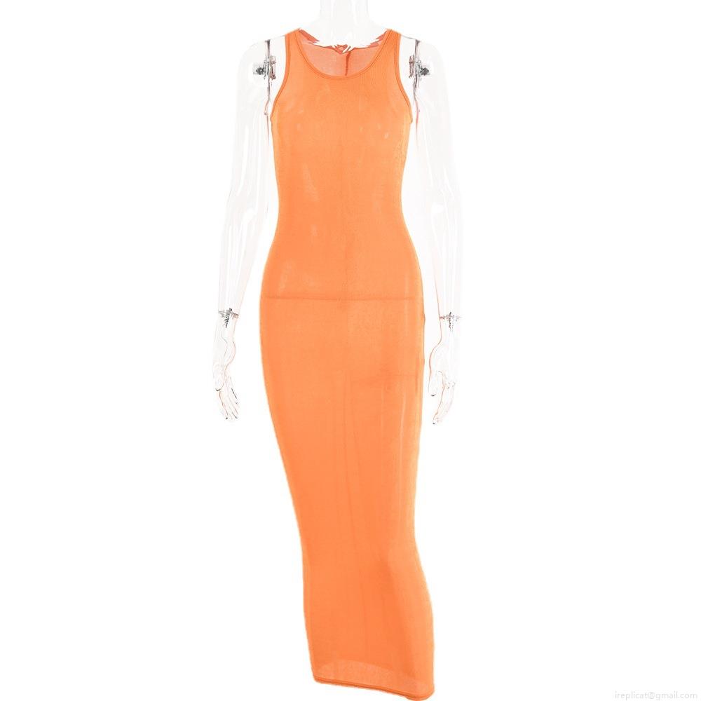 • Women's Sexy Sleeveless Round Neck Maxi Dress Ribbed Knit Elastic Bodycon Solid Color Pencil Dress INS Style Streetwear For Party Club Evening