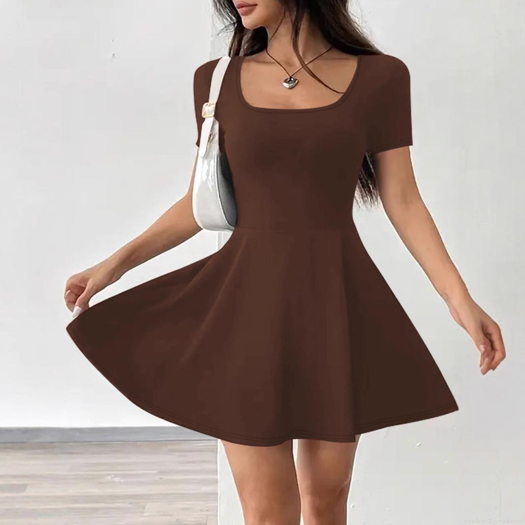 • Women's Sexy Square Neck Mini Dress With Built-in Shorts Pockets Short Sleeve A-Line Skater Athletic Dress For Tennis Golf Casual Summer Outfit