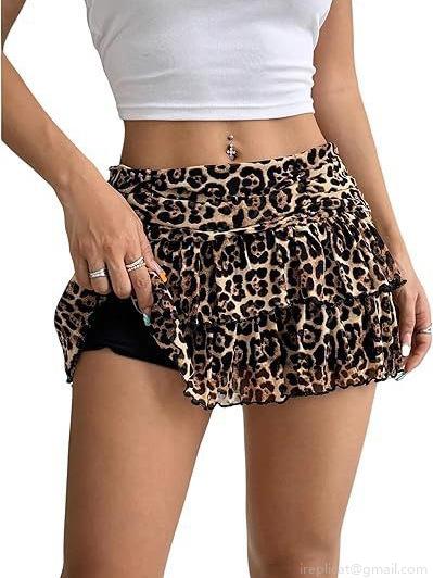 • Women's Sexy Tiered Lace Mini Skirt High Waist Leopard Print Ruffle Cake Skirt Hot Girl Style Short Skirt For Party Clubwear Vacation