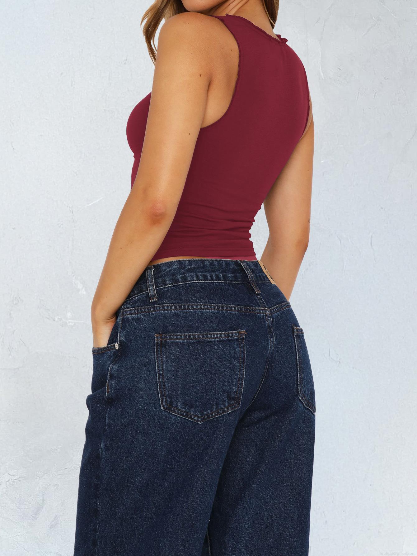 • Women's Sexy Y2K Sleeveless Tank Top V-Neck Ruffle Trim Ruched Front Slim Fit Camisole Summer Casual Club Party Streetwear Polyester Spandex Vest