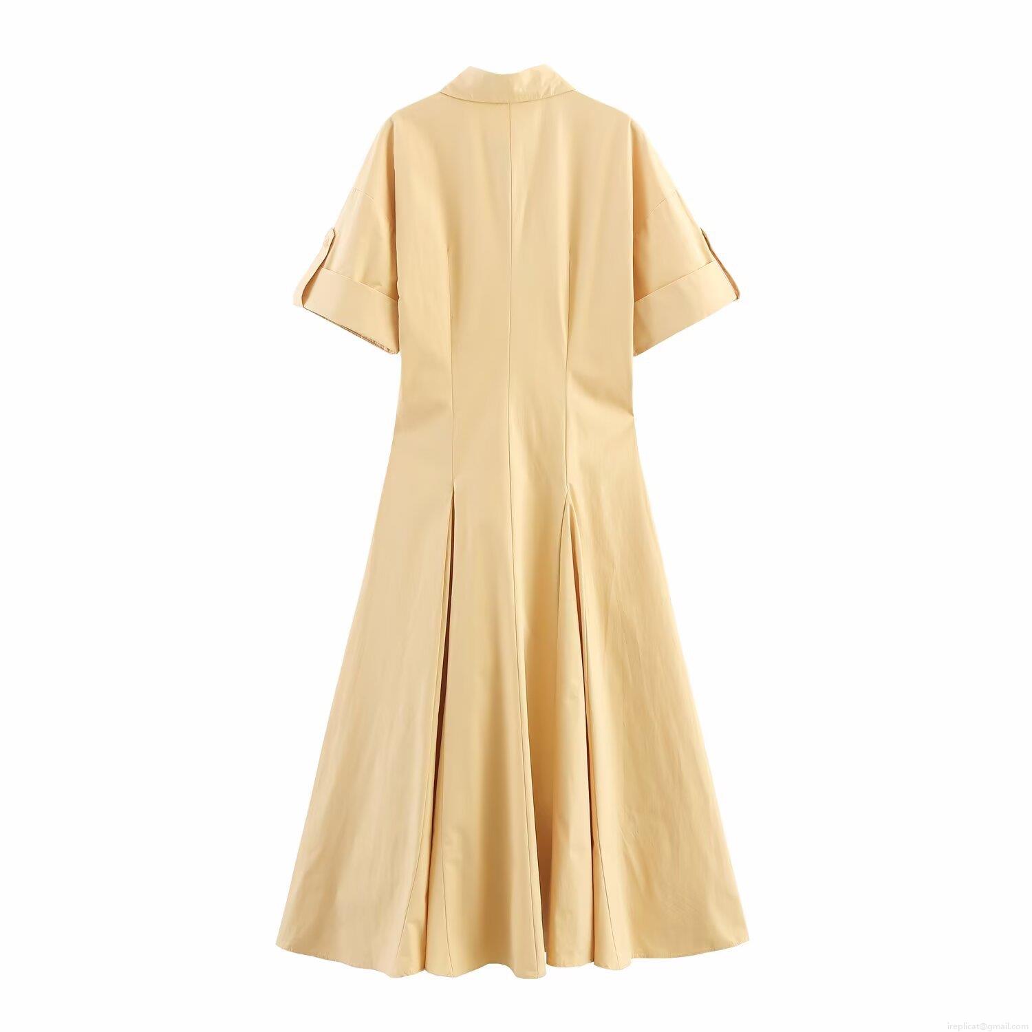• Women's Short Sleeve Shirt Dress Elegant Single Breasted Maxi Dress With Pockets Pleated Waist Office Casual Faux Tinsel Long Dress