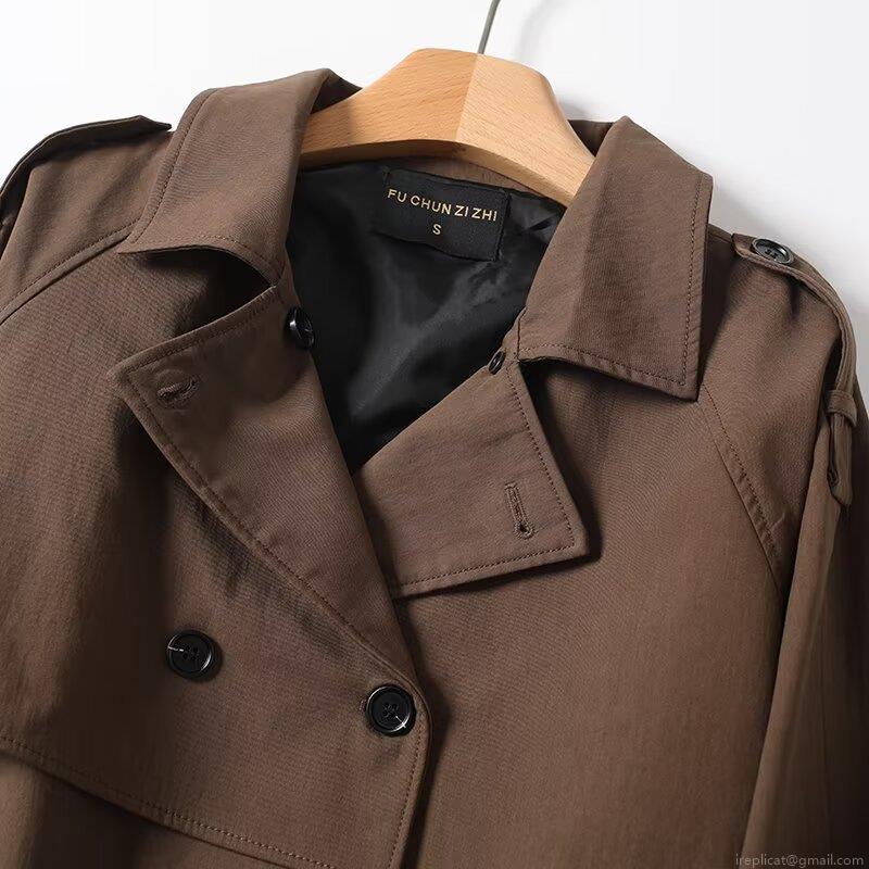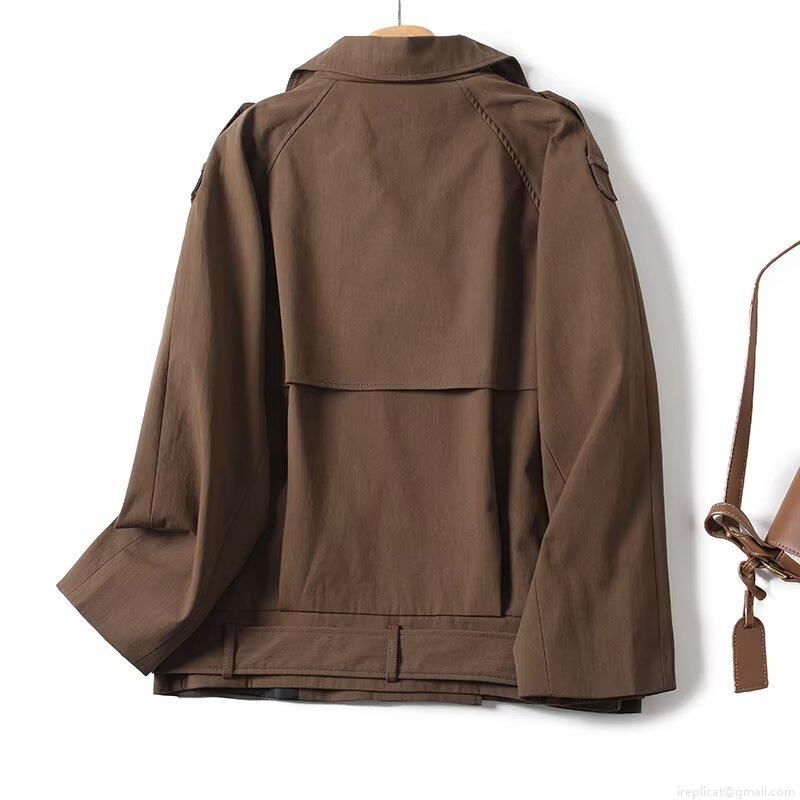 Women's Short Trench Coat Jacket Cotton Nylon Blend Double Breasted With Belt Lapel Autumn Fashion Casual Office Outerwear For Women