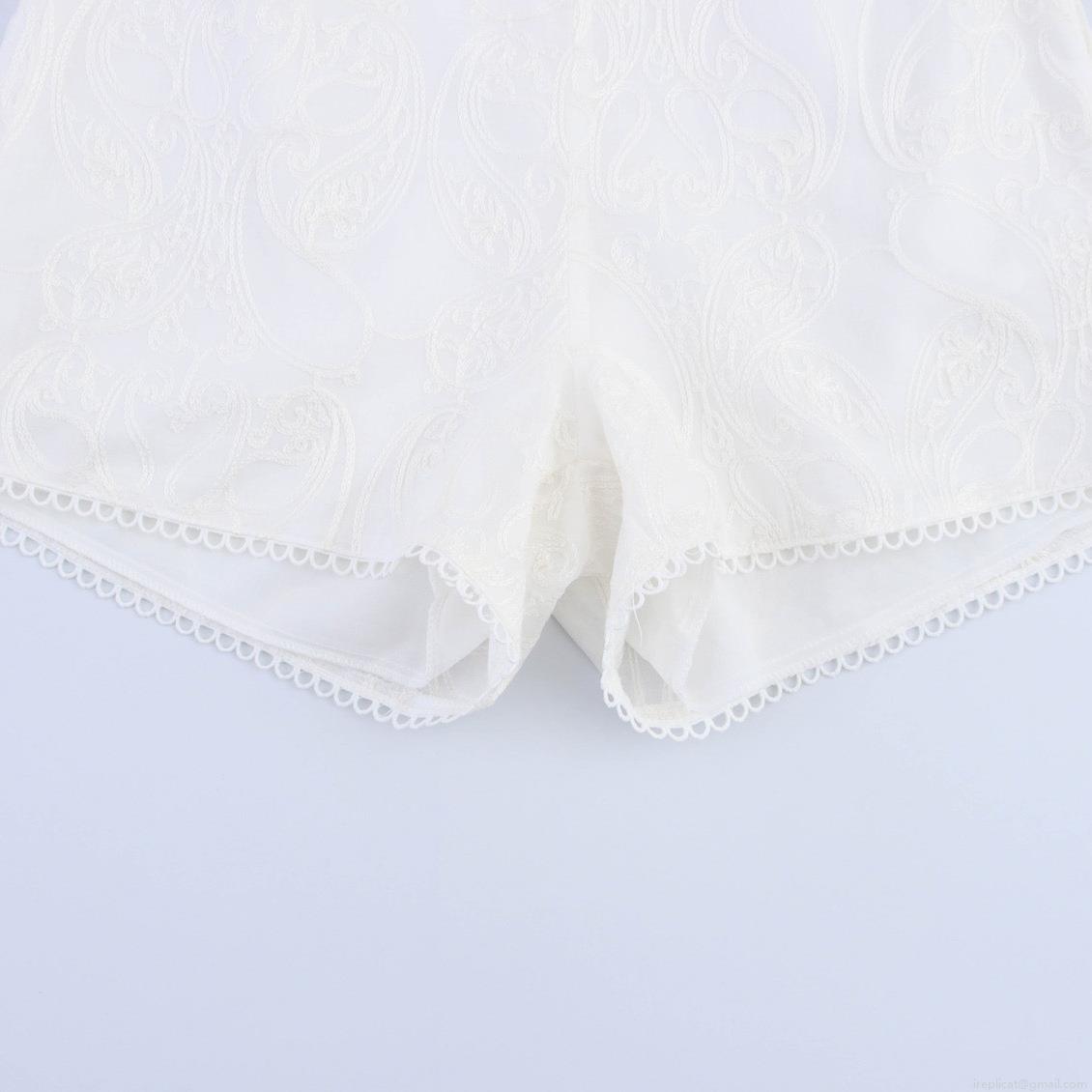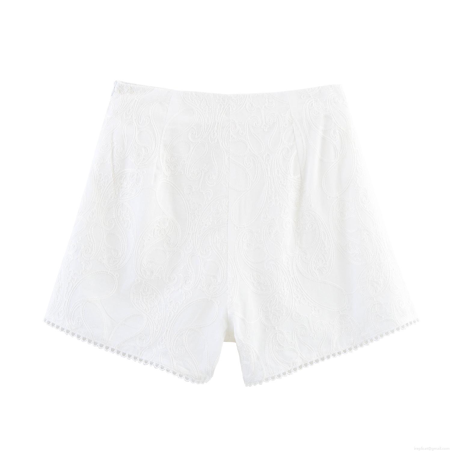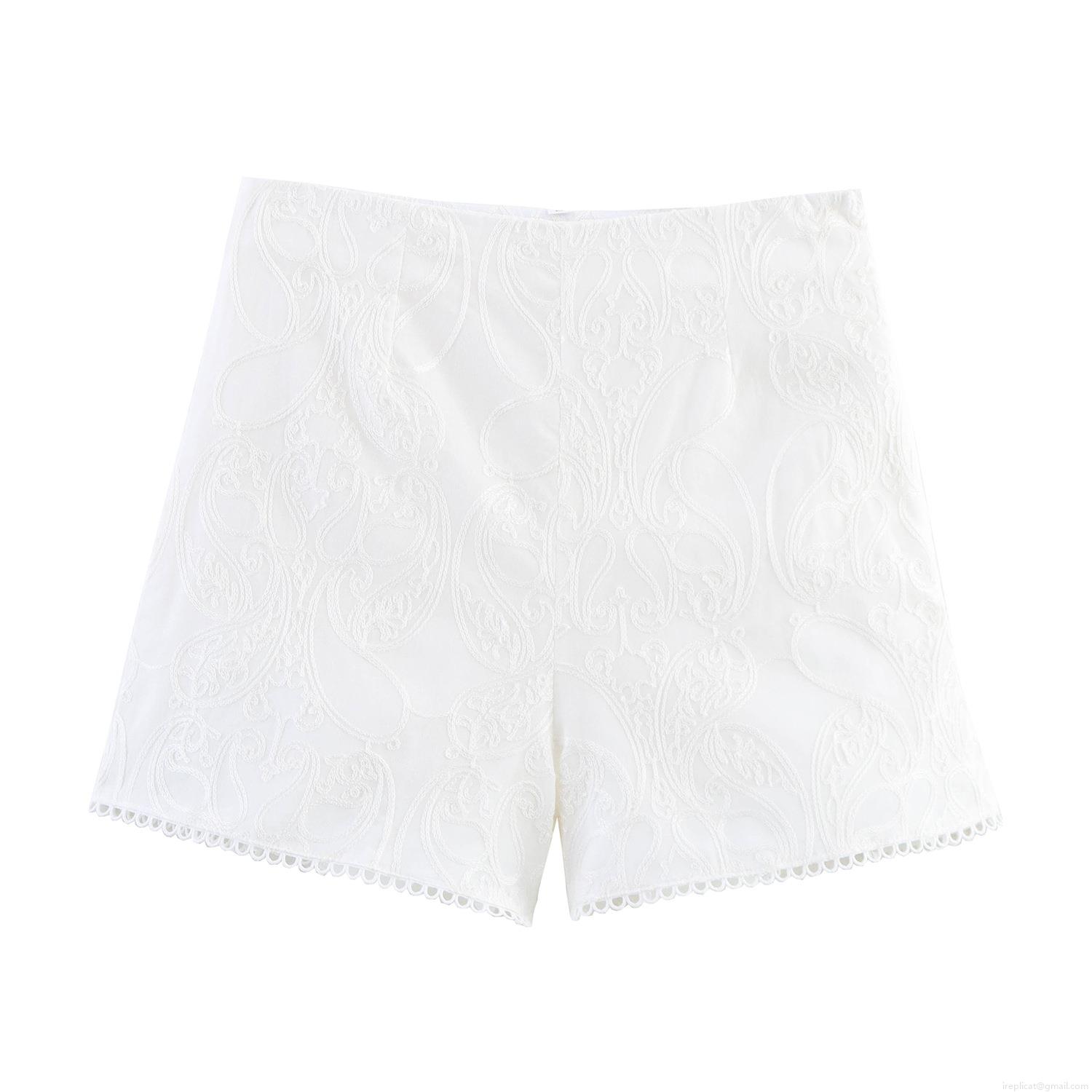 • French Style White Lace Embroidery Women Shorts Elegant Paisley Scalloped Edge Mid Waist A-Line Hot Pants For Summer Vacation Ladies Casual Wear