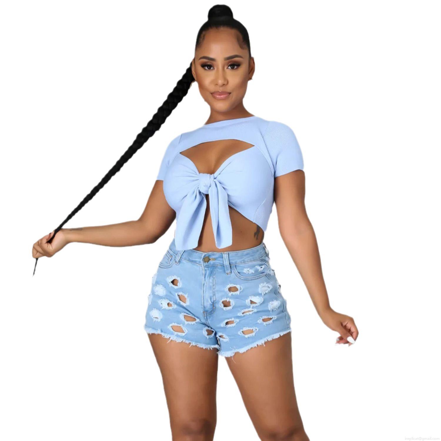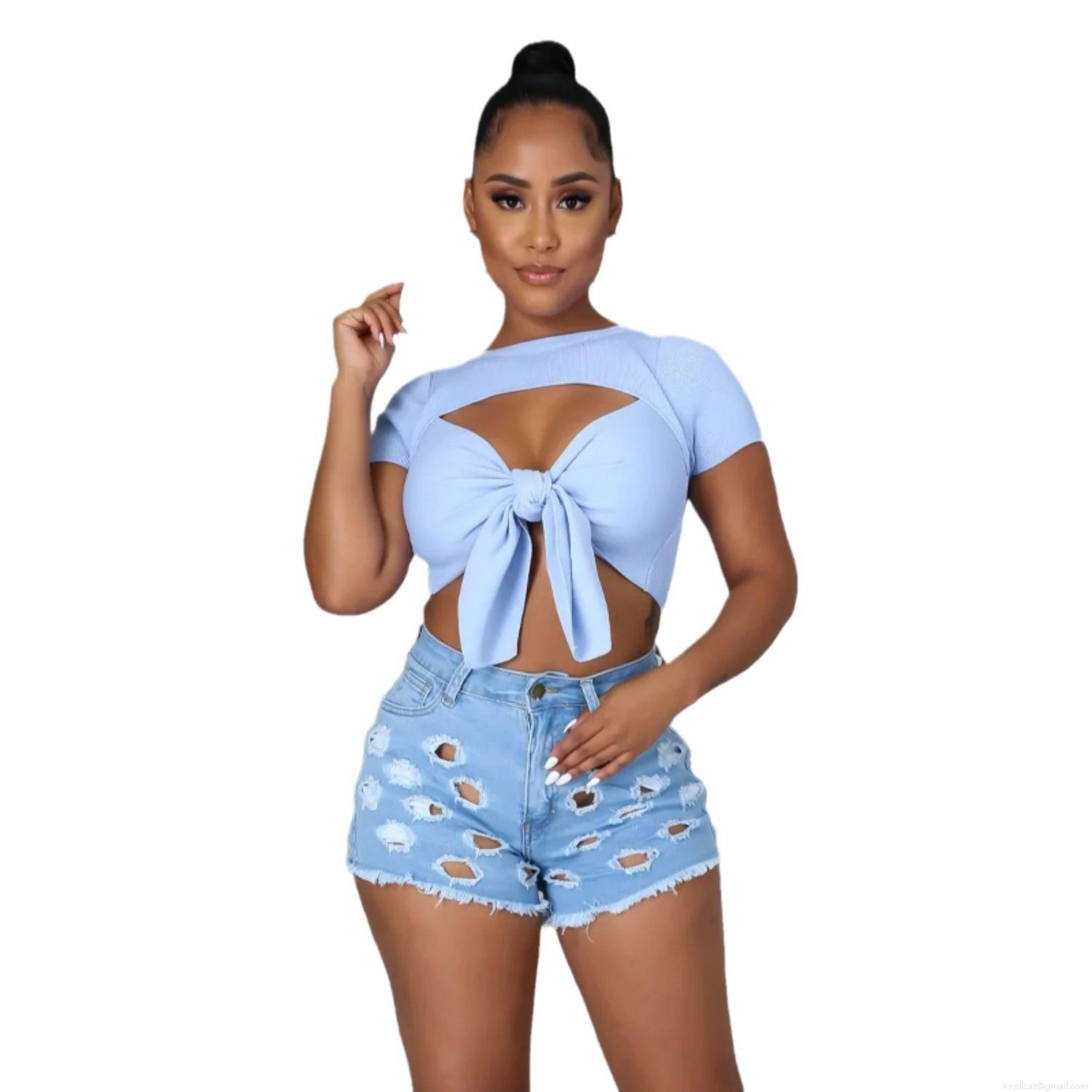 Sexy High Waisted Denim Shorts for Women Hollow Out Distressed Circle Cut-out Jeans Shorts Frayed Hem Cotton Blend Streetwear Casual Summer Hot Pants