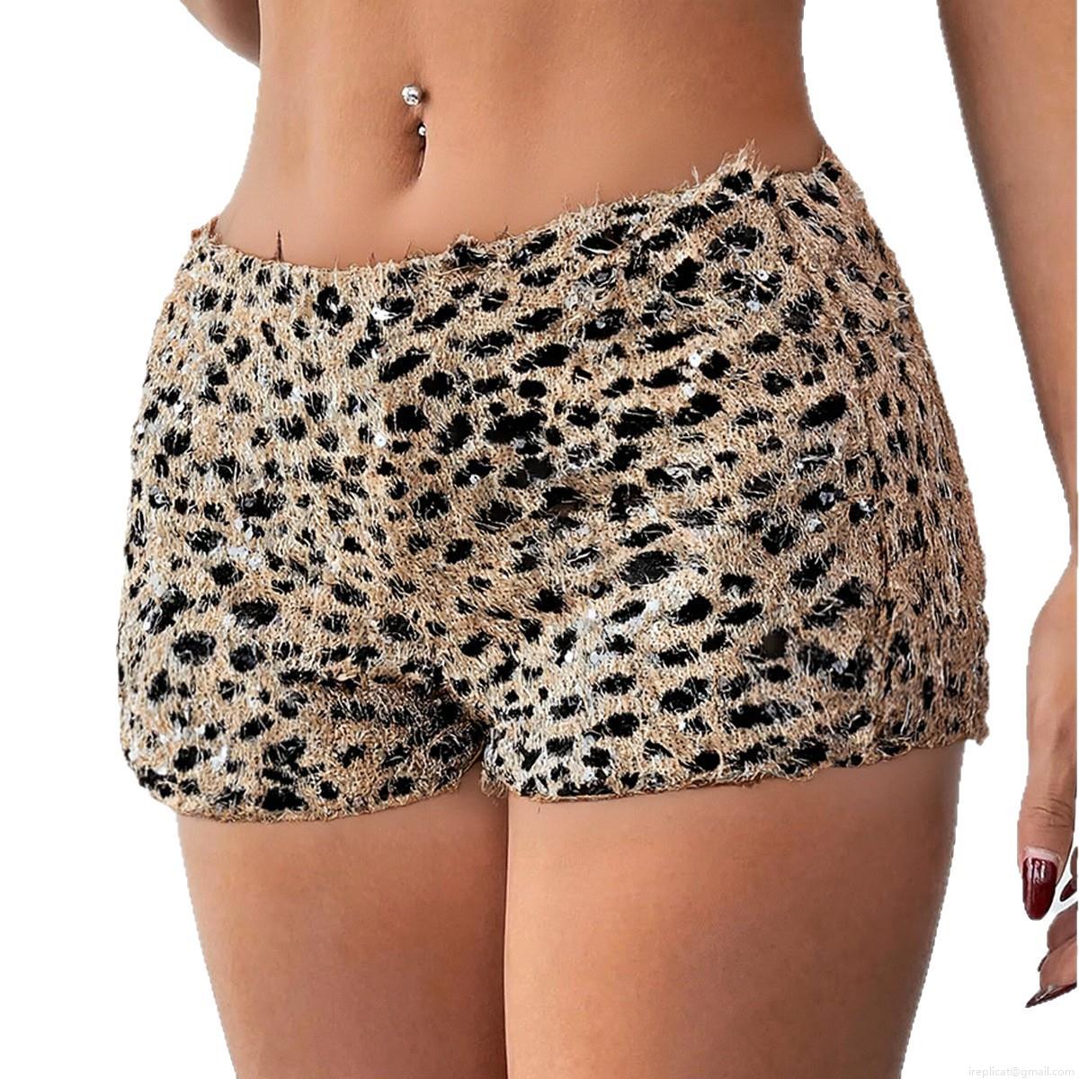 • Sexy Leopard Print Sequin Hot Pants Low Waist Slim Fit Booty Shorts For Women Party Club Nightwear Polyester Spandex Short Trousers