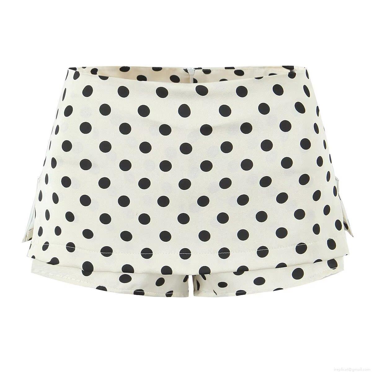 • Women Casual Polka Dot Skort High Waist 100% Polyester Shorts With Side Hidden Zipper Summer Beach Streetwear Mini Skirt Shorts For Women