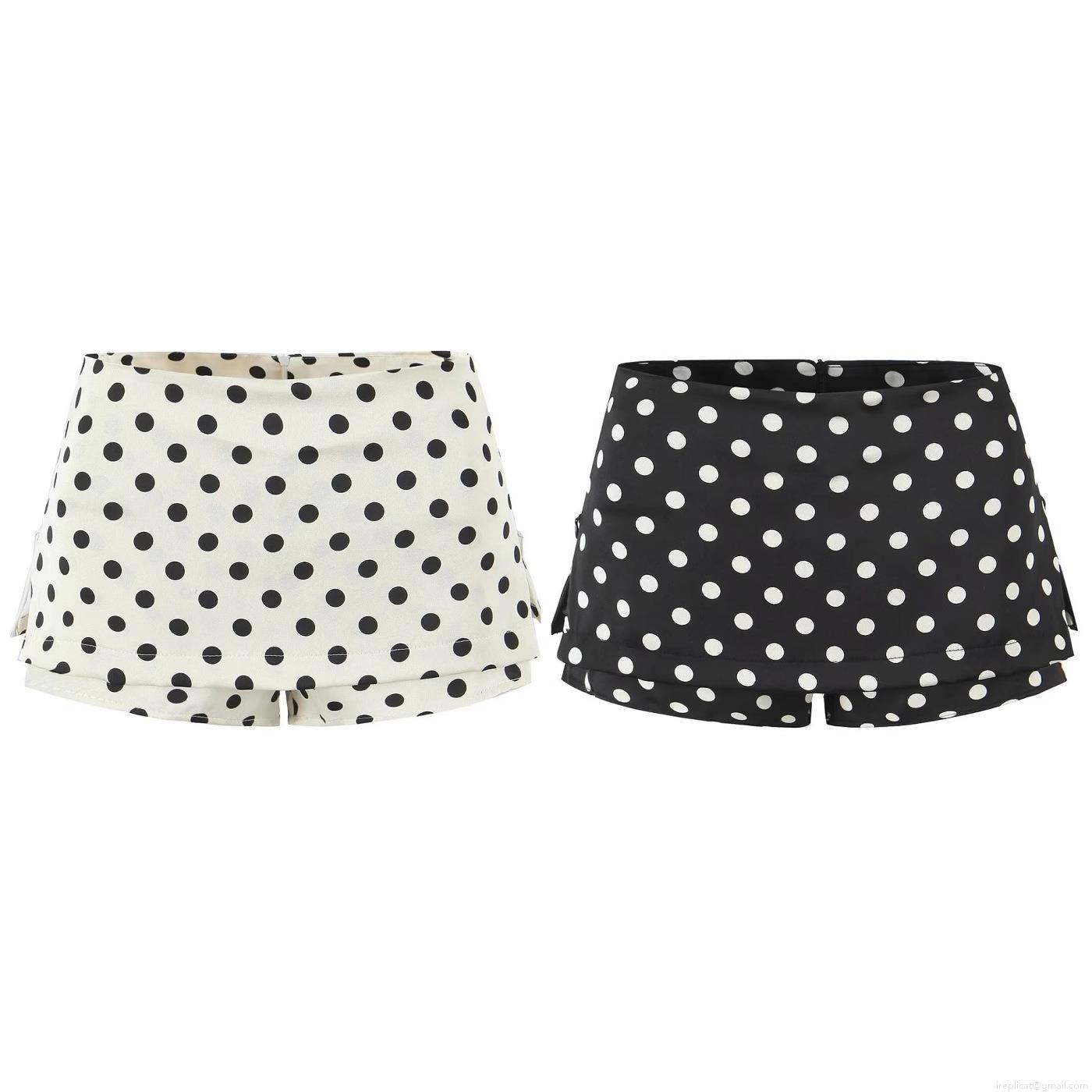 Women Casual Polka Dot Skort High Waist 100% Polyester Shorts With Side Hidden Zipper Summer Beach Streetwear Mini Skirt Shorts For Women
