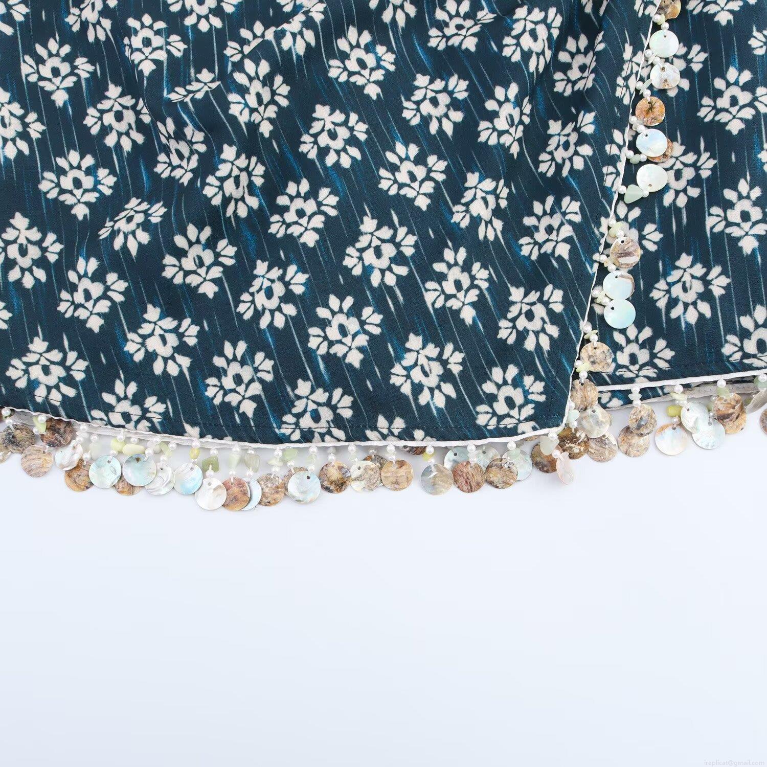 • Women Ethnic Floral Print Skort Polyester Asymmetrical Wrap Mini Skirt With Shell Tassel Beaded Trim Summer Beach Vacation Bohemian Style Shorts For Ladies