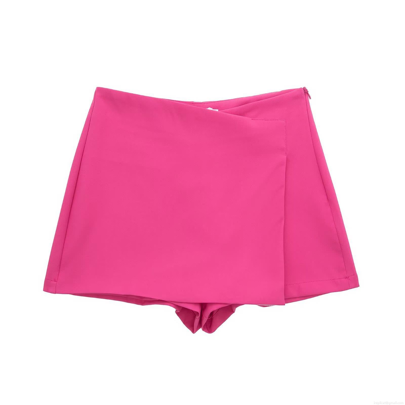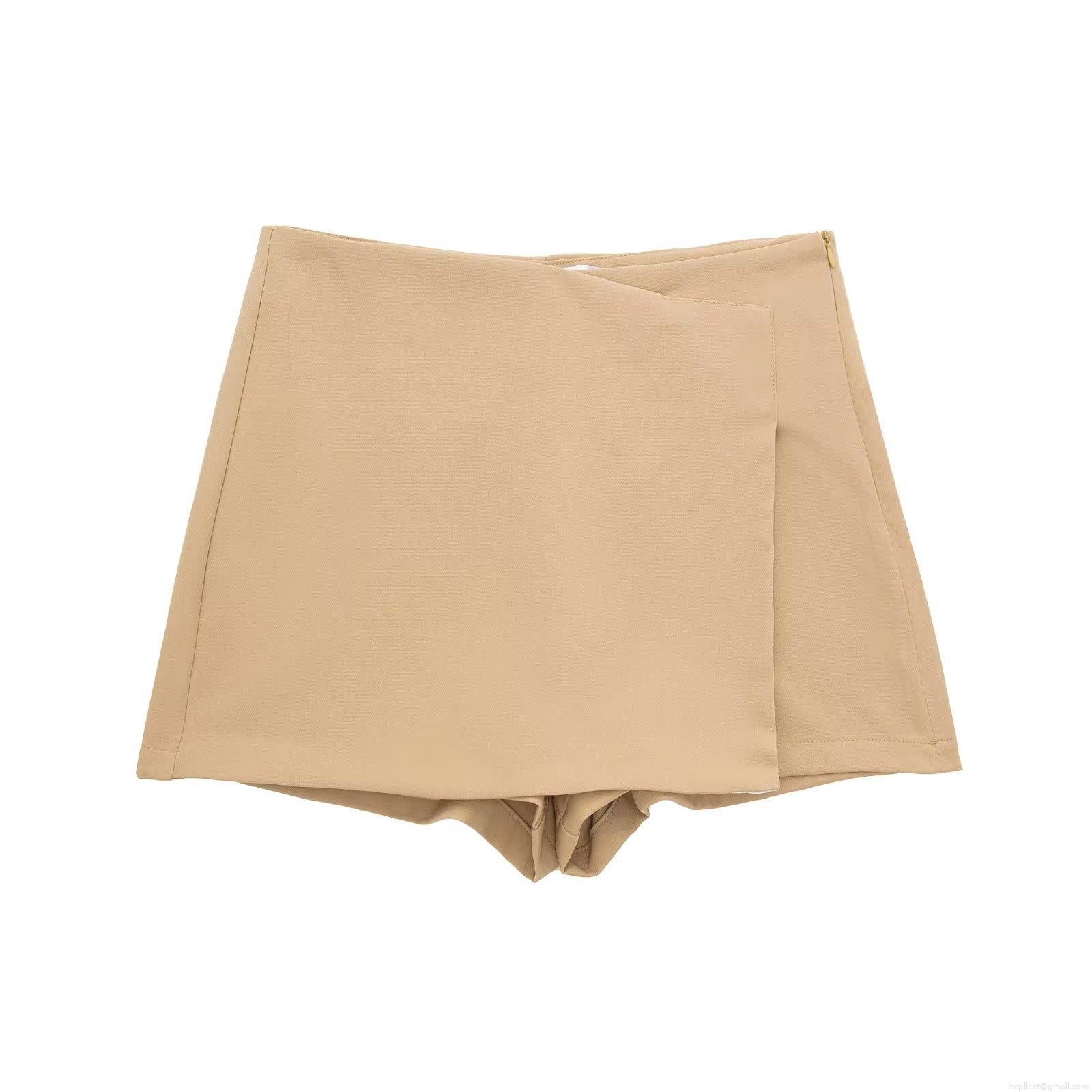 • Women Fashion Asymmetric High Waist Skorts Summer Solid Color Polyester Wrap Mini Skirt Shorts With Side Hidden Zipper For Casual Streetwear Party