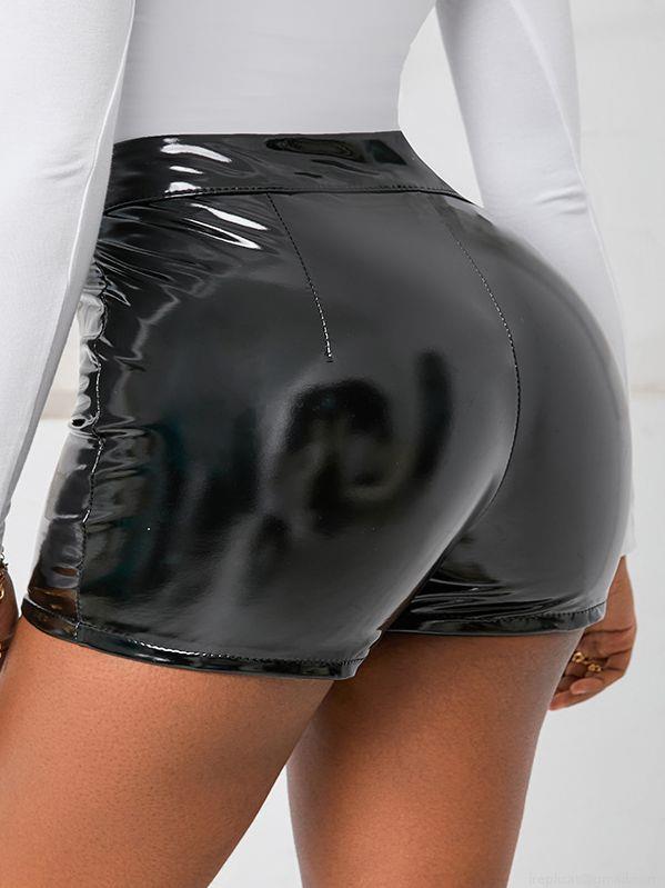 • Women High Waist Faux Leather Shorts Glossy PU PVC Stretchy Sexy Slim Fit Mini Hot Pants Clubwear Streetwear Night Out Black Shorts