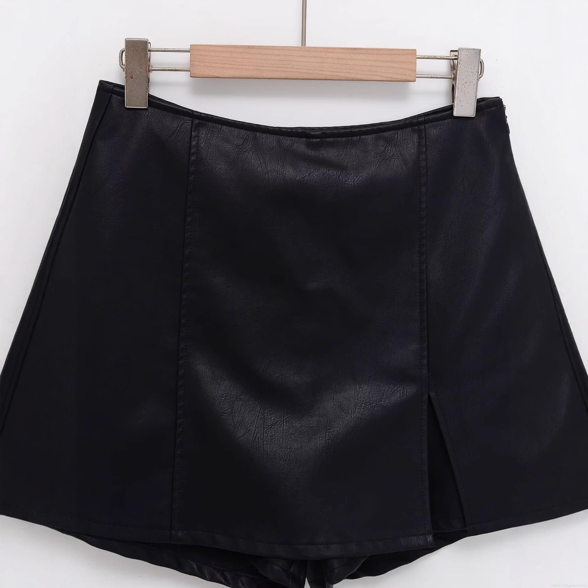 • Women High Waist Faux Leather Skorts With Side Slit Trendy PU Leather Shorts Skirt Sexy A-Line Skorts Casual Party Clubwear Fashion Women's Clothing