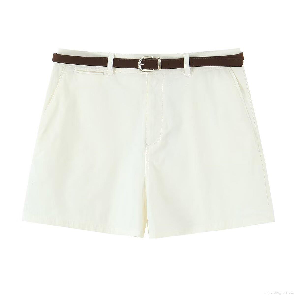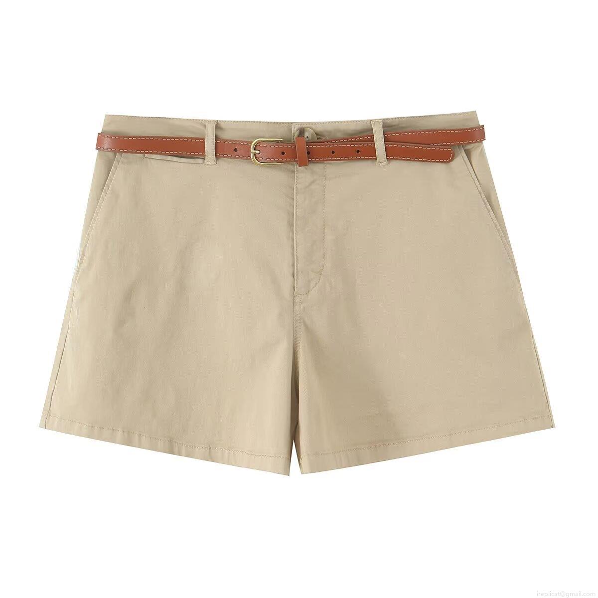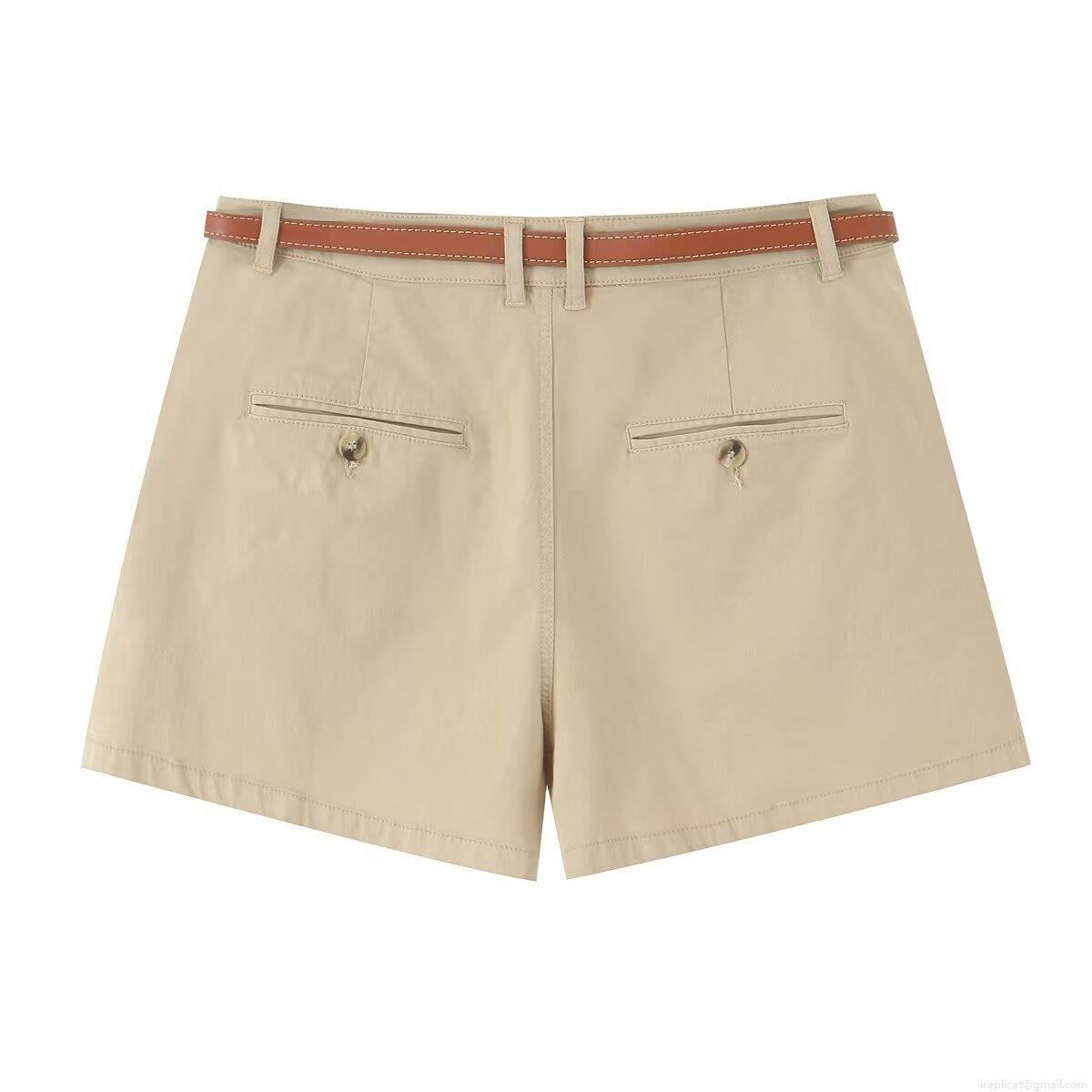 • Women High Waist Pleated Casual Shorts With Brown Belt Polyester Blend Summer Beach Vacation Fashion Solid Color Ladies Bottoms