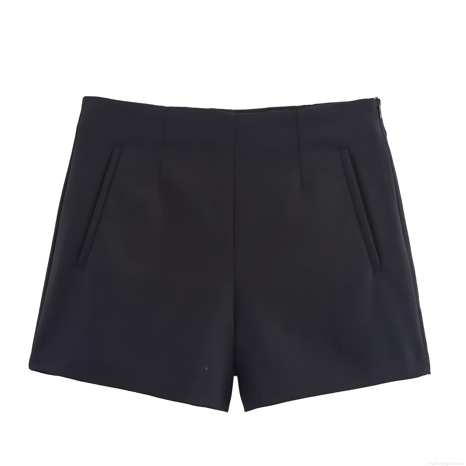 Solid Color, Stripe, Slanted Pocket, Invisible Zipper, High-waisted Design