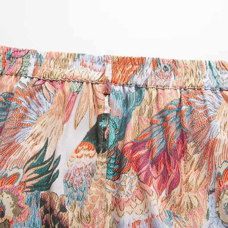• Women Jacquard Bird Print Shorts High Waist Colorful Embroidery Wide Leg Casual Hot Pants for Summer Vacation Sweet Style