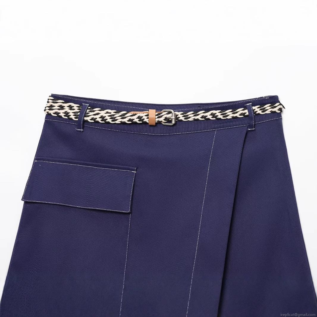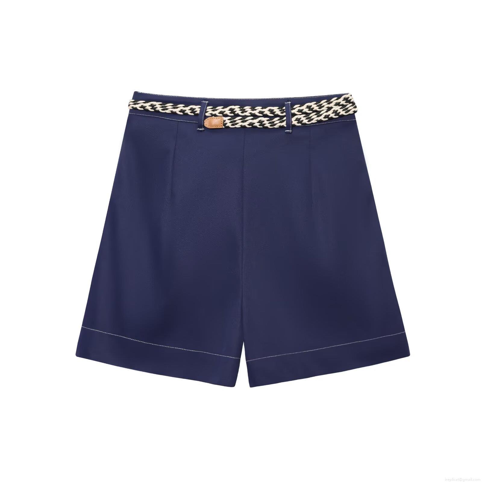 • Women Navy Blue Wrap Skort Shorts With Woven Belt Contrast Stitching Cargo Pockets Summer Casual Streetwear Mini Shorts Bottoms