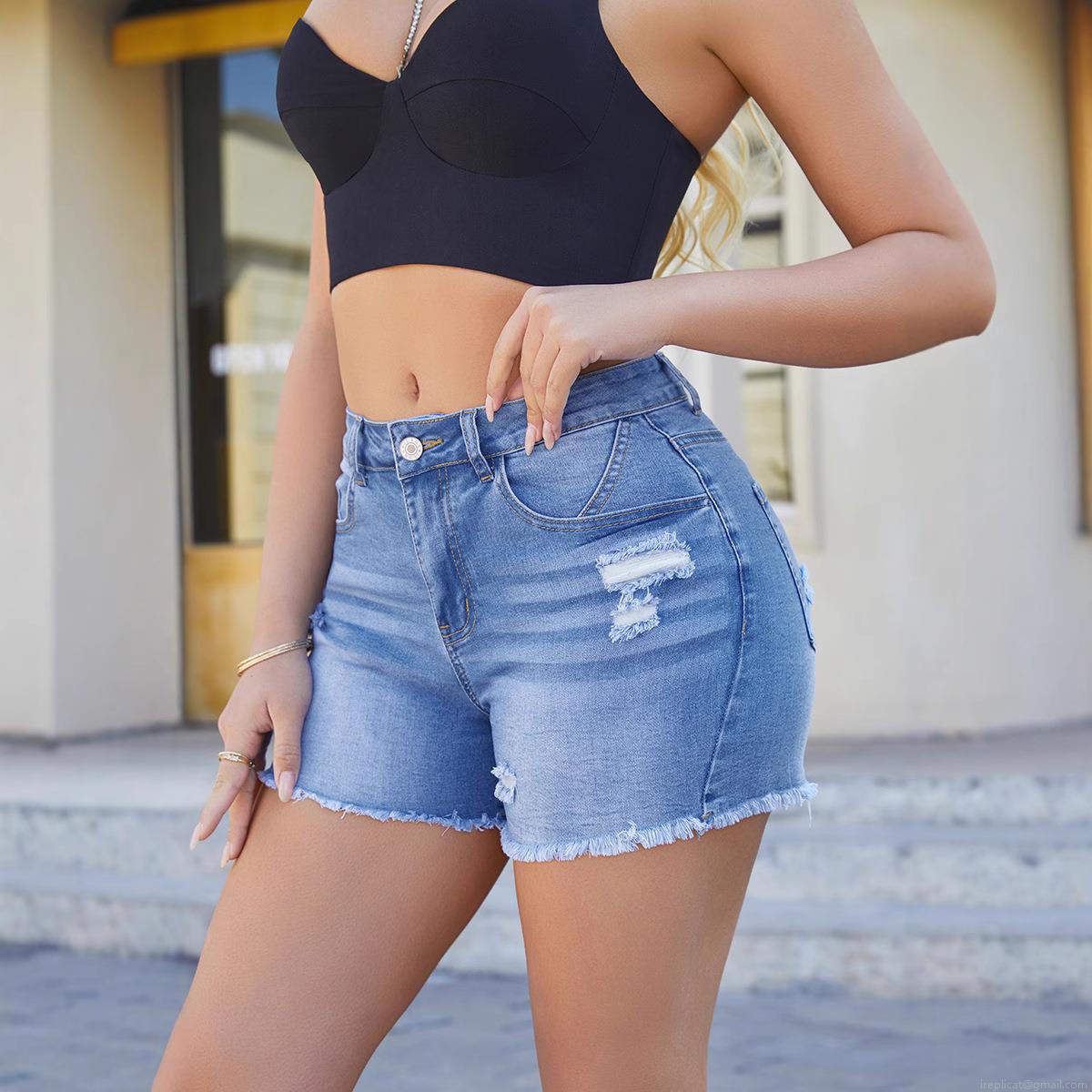 Women Sexy High Waist Distressed Denim Shorts High Stretch Cotton Blend Frayed Hem Ripped Jean Shorts Summer Streetwear Hot Pants