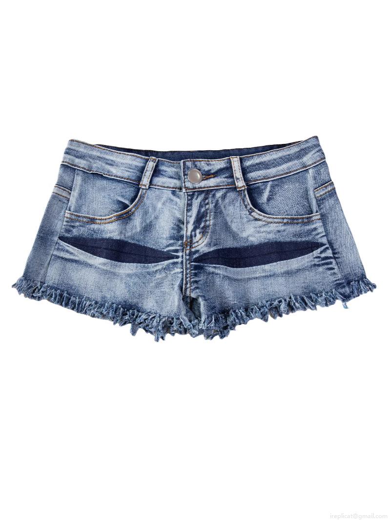 • Women Sexy Low Waist Denim Shorts Light Blue Washed Distressed Fringed Hot Pants For Club Party Nightclub Slim Fit Cotton Denim Shorts