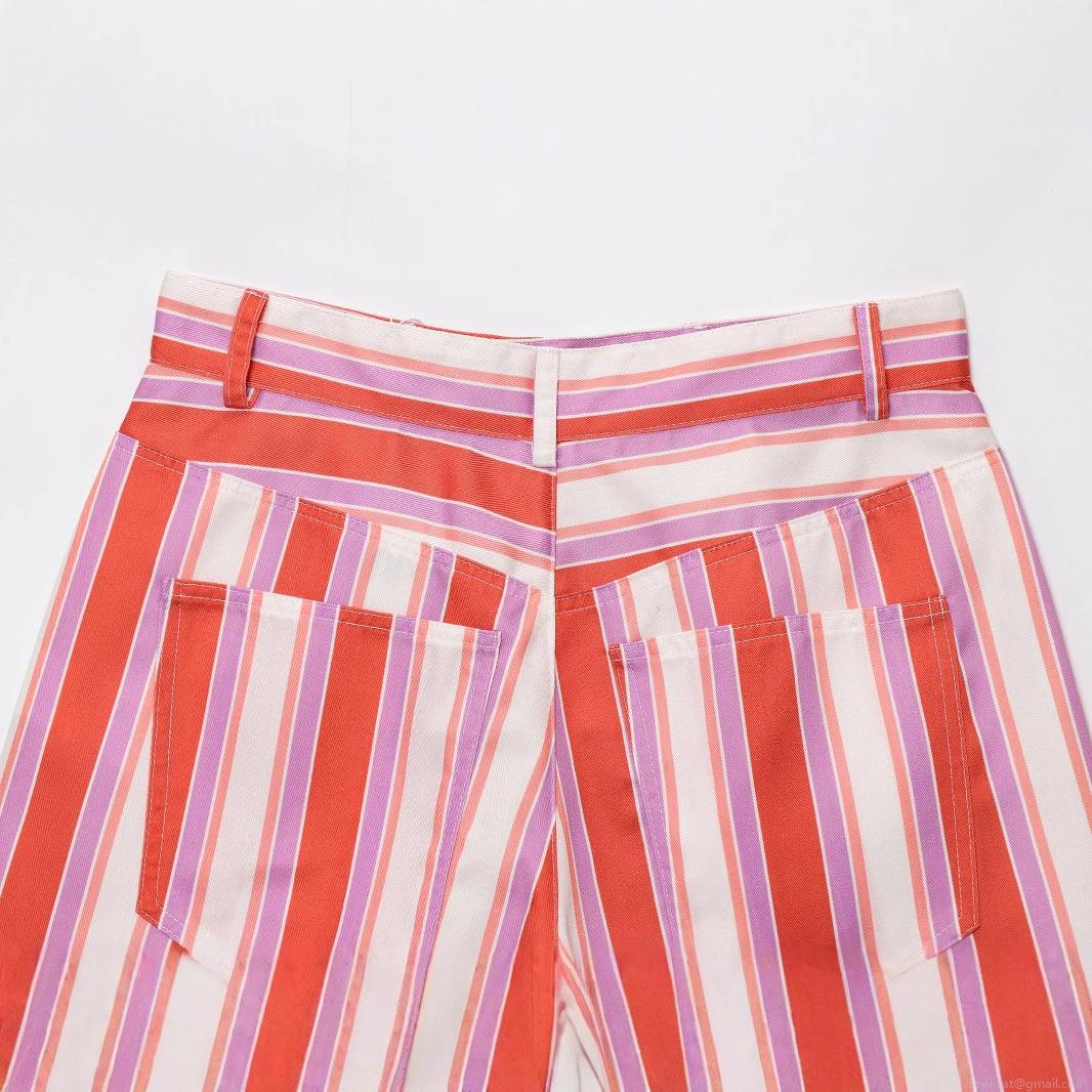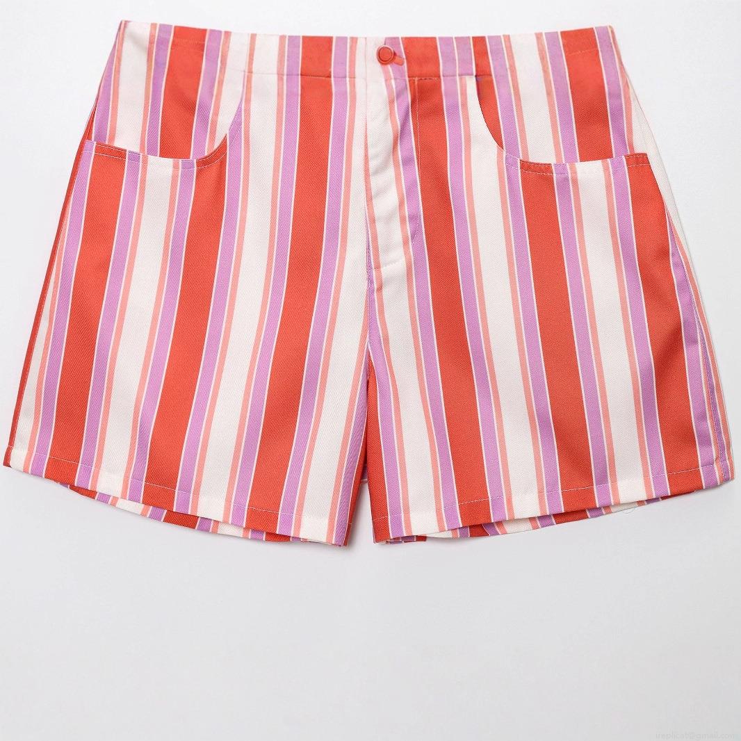 • Women Summer Striped High Waisted Shorts Colorful Twill Cotton Vertical Stripe Casual Beach Vacation Straight Leg Shorts For Women Hot Style Bottoms