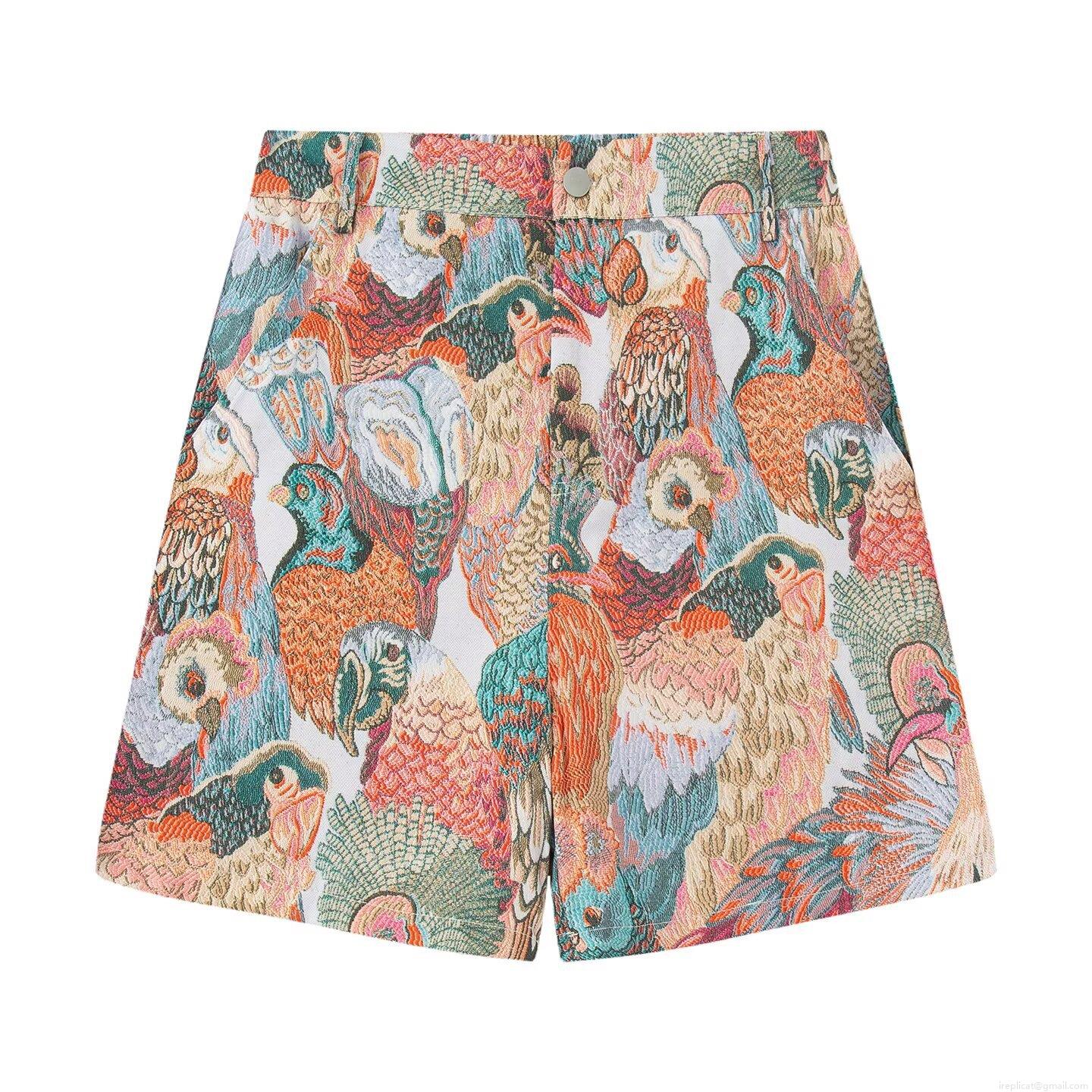 Women's Autumn European Style Peacock Bird Embroidery Jacquard Shorts Colorful Streetwear Fashion Casual Polyester Shorts For Women