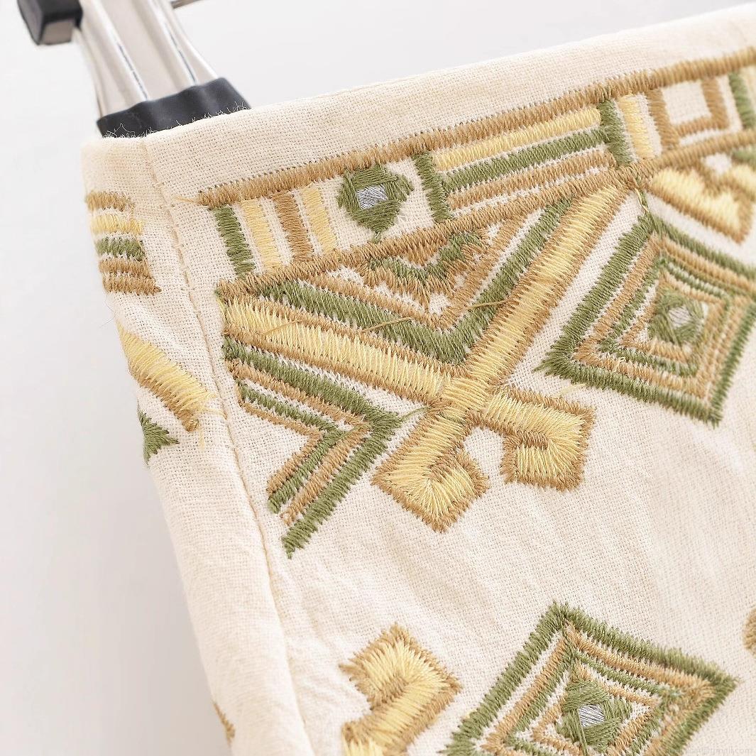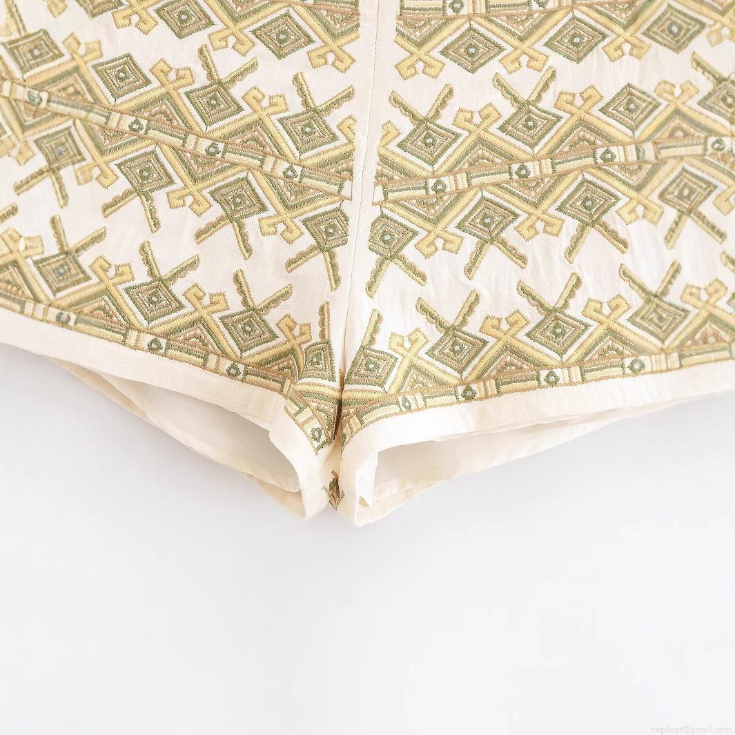 • Women's Boho Geometric Embroidery Shorts Ethnic Tribal High Waisted Casual Holiday Beach Off White Polyester Summer Loose Fit Breathable Fashion Bottoms