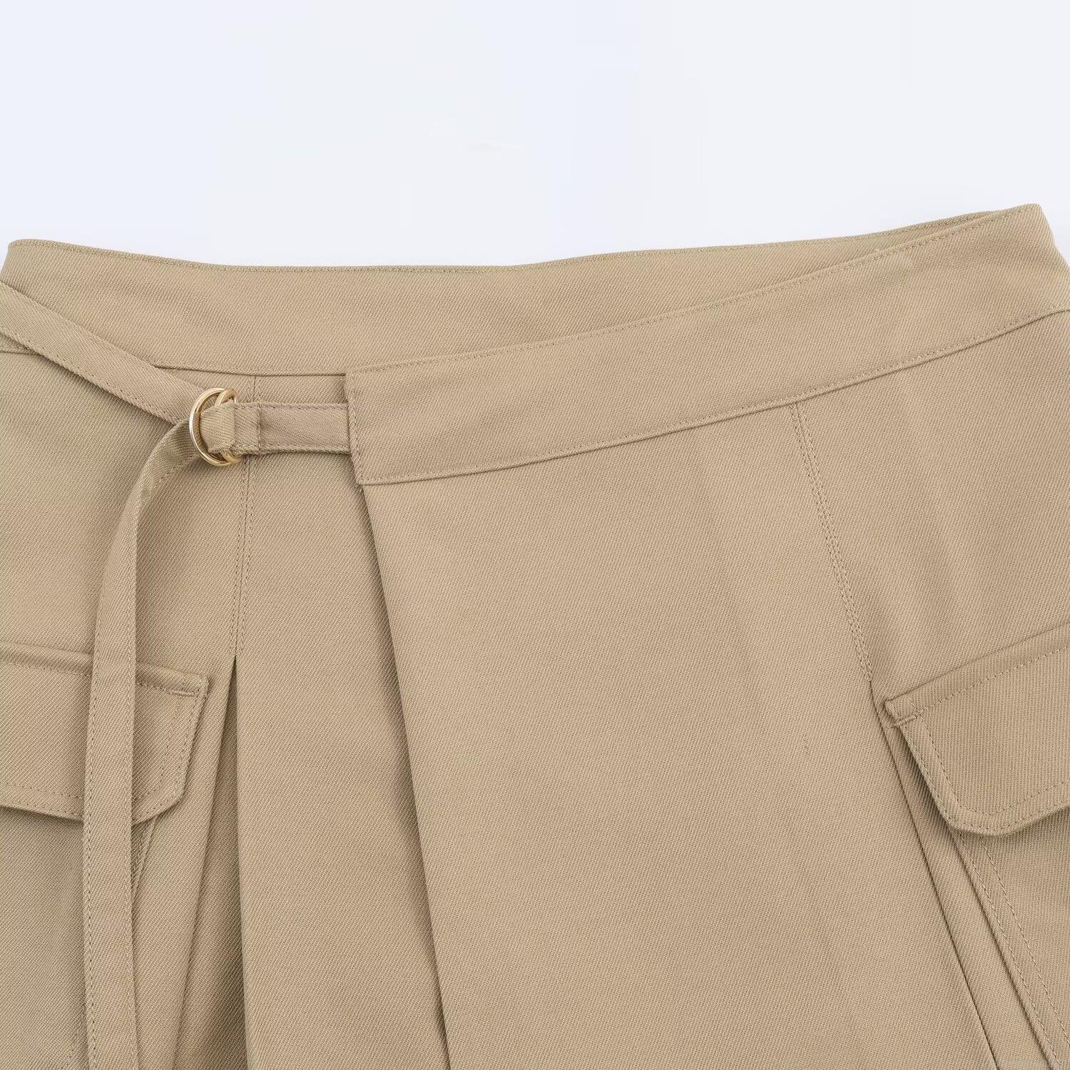 • Women's Cargo Skort Casual Khaki High Waist Twill Cotton Blend Skirt Pants with Large Pockets and Metal D-Ring Belt A-Line Mini Short Skirt Fashion Streetwear for Daily Wear