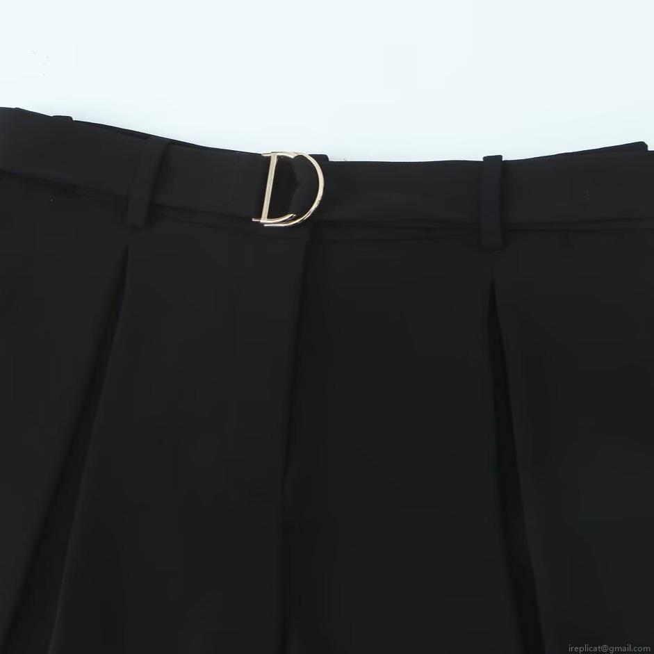 • Women's Casual Black Shorts With Gold D-Shaped Buckle Belt Pleated High Waist Fashion Short Pants For Summer Daily Wear