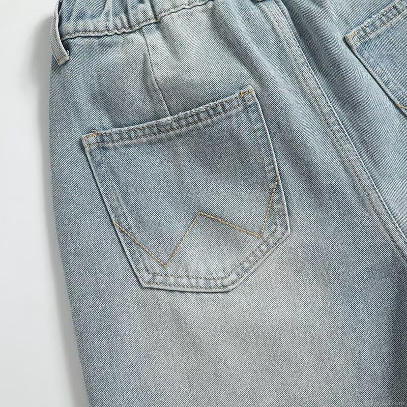 Solid Color, Pocket, Water Wash, Rough Edges, Elastic Waistband, Water-washed Color