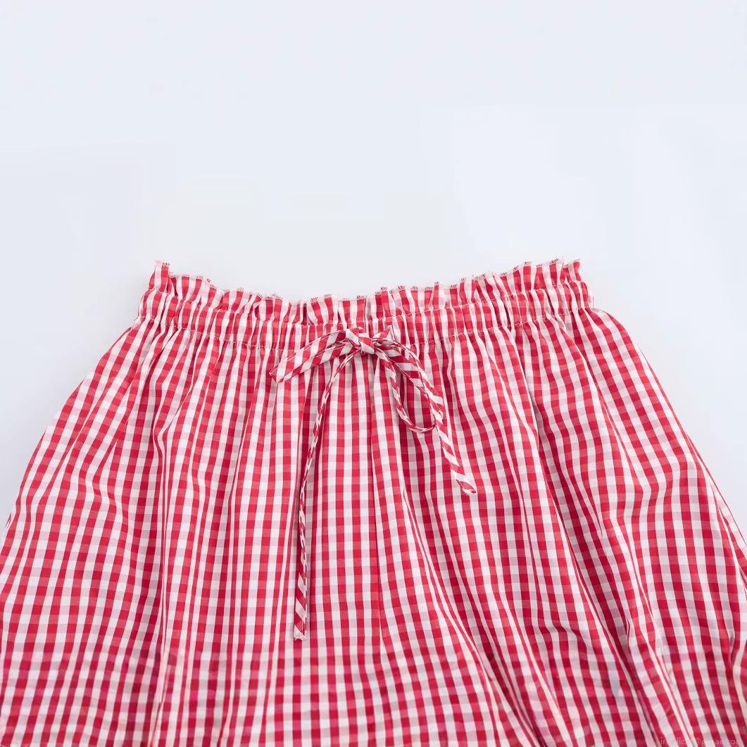 • Women's Casual Gingham Patchwork Shorts High Waist Elastic Drawstring Bow Lace Trim Short Pants Summer Sweet Streetwear Polyester Women's Bottoms