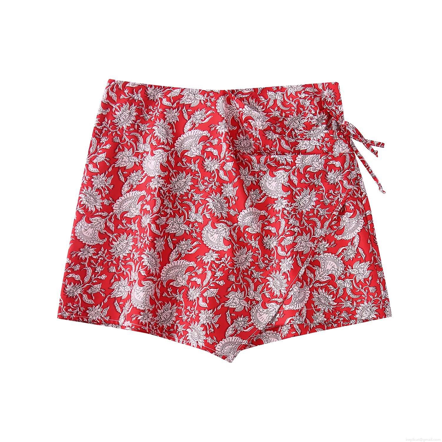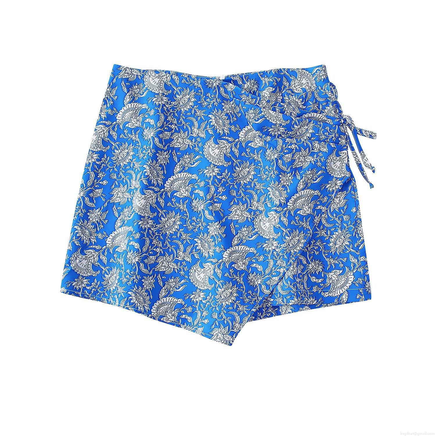 • Women's Casual High Waist Floral Skorts Paisley Print Side Tie Shorts 100% Polyester Lightweight Breathable Bottoms For Summer Vacation Street Style Women Clothing