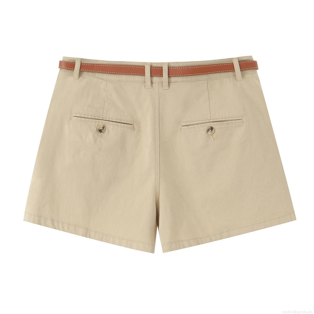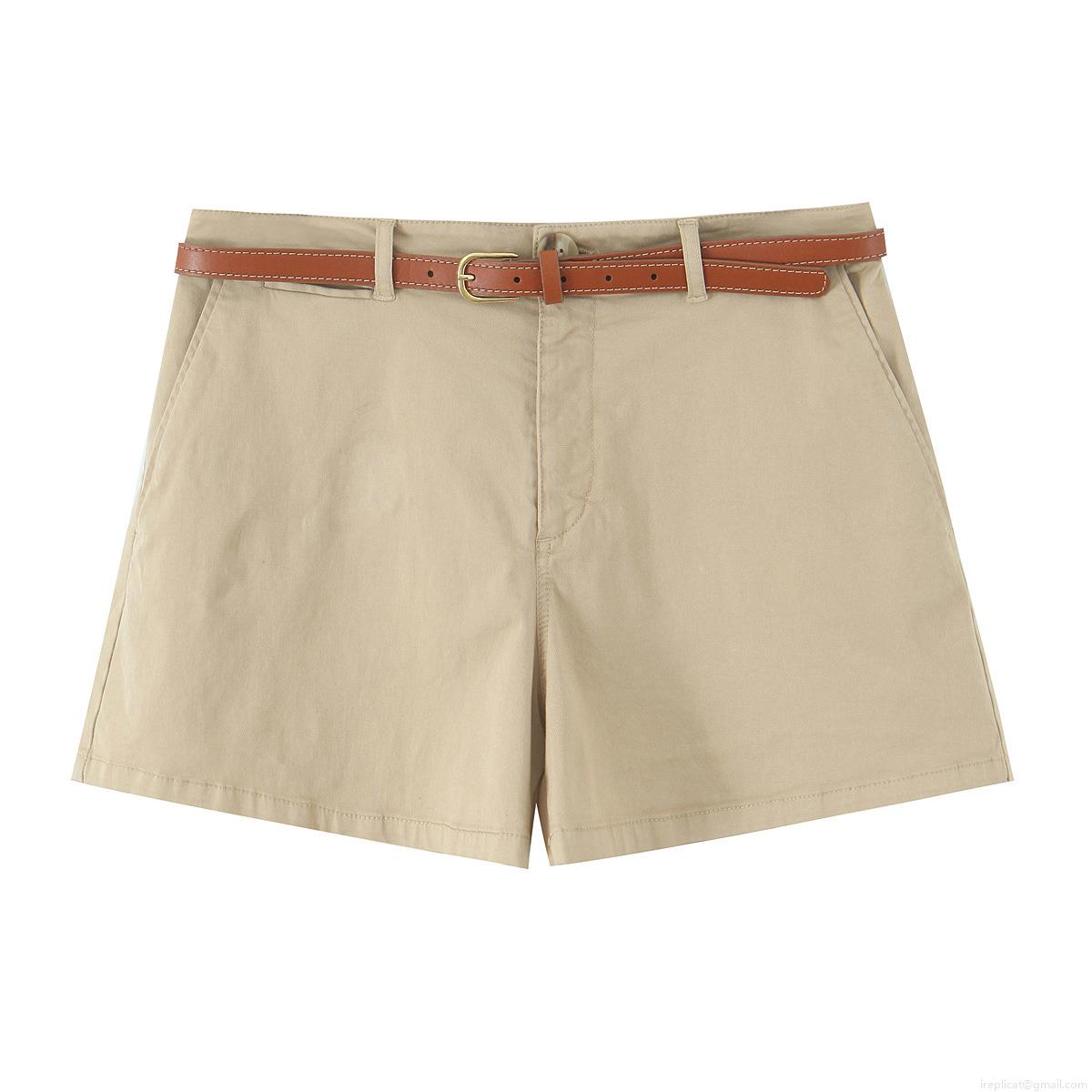 • Women's Casual High Waist Pleated Shorts With Belt Solid Color Lightweight Breathable Polyester Cotton Blend Summer Beach Shorts For Women