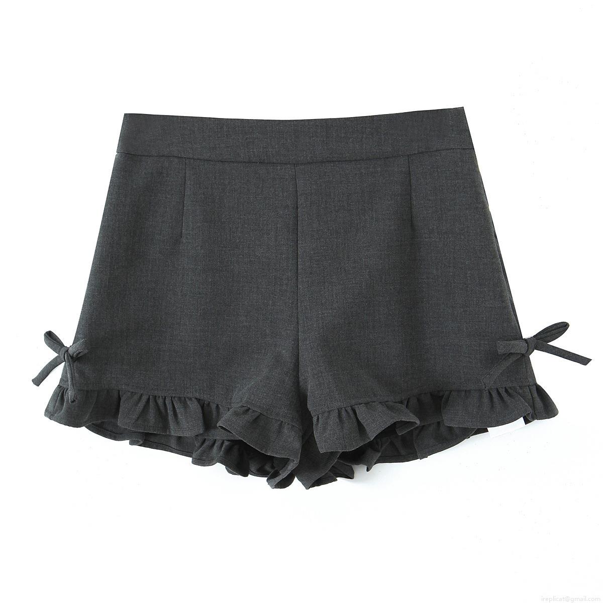 • Women's Casual High Waist Shorts Polyester Woven Fabric Side Bow Knot Ruffle Hem Summer Street Style Fashion Daily Solid Color Bottoms For Women