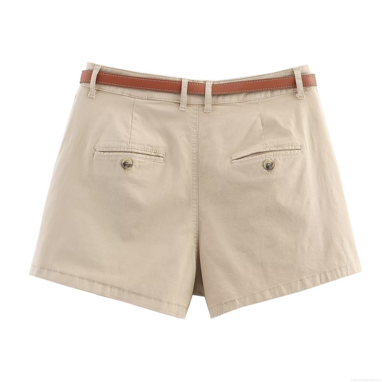 • Women's Casual High Waist Shorts With Leather Belt Polyester Solid Color Summer Beach Vacation Fashion Short Pants Bottoms For Ladies