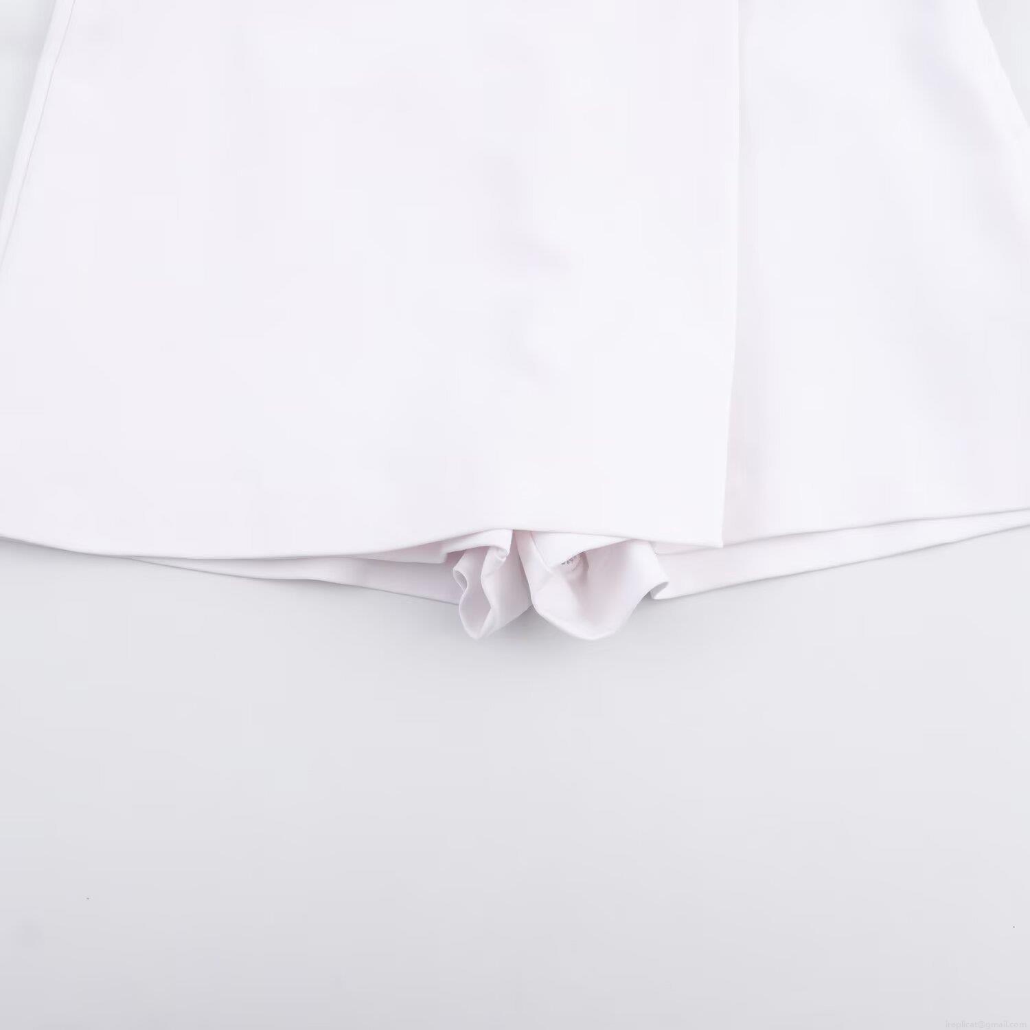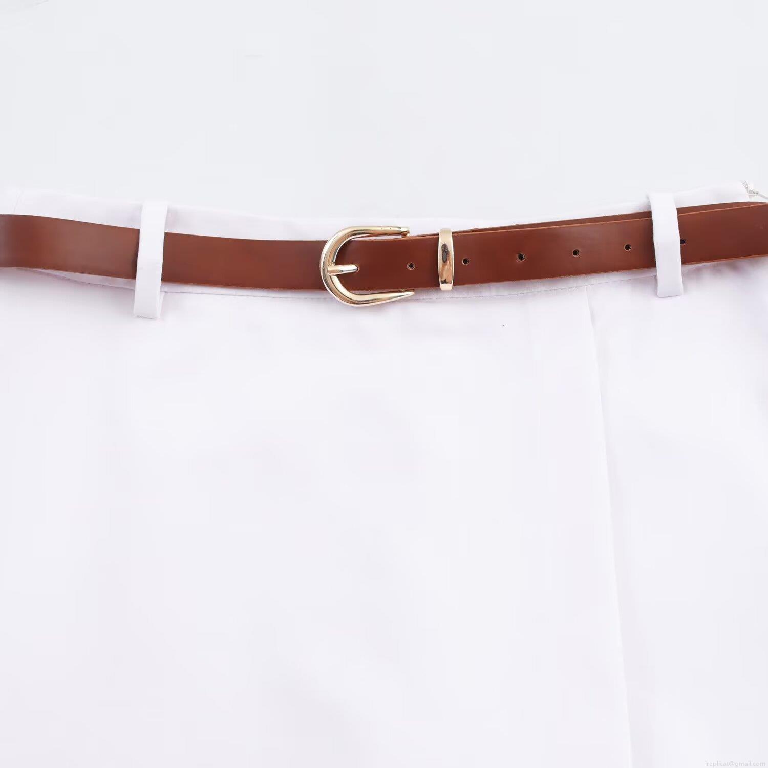 • Women's Casual High Waist Skort With Brown Leather Belt Solid White Double Breasted Mini Shorts Culottes For Daily Commuting