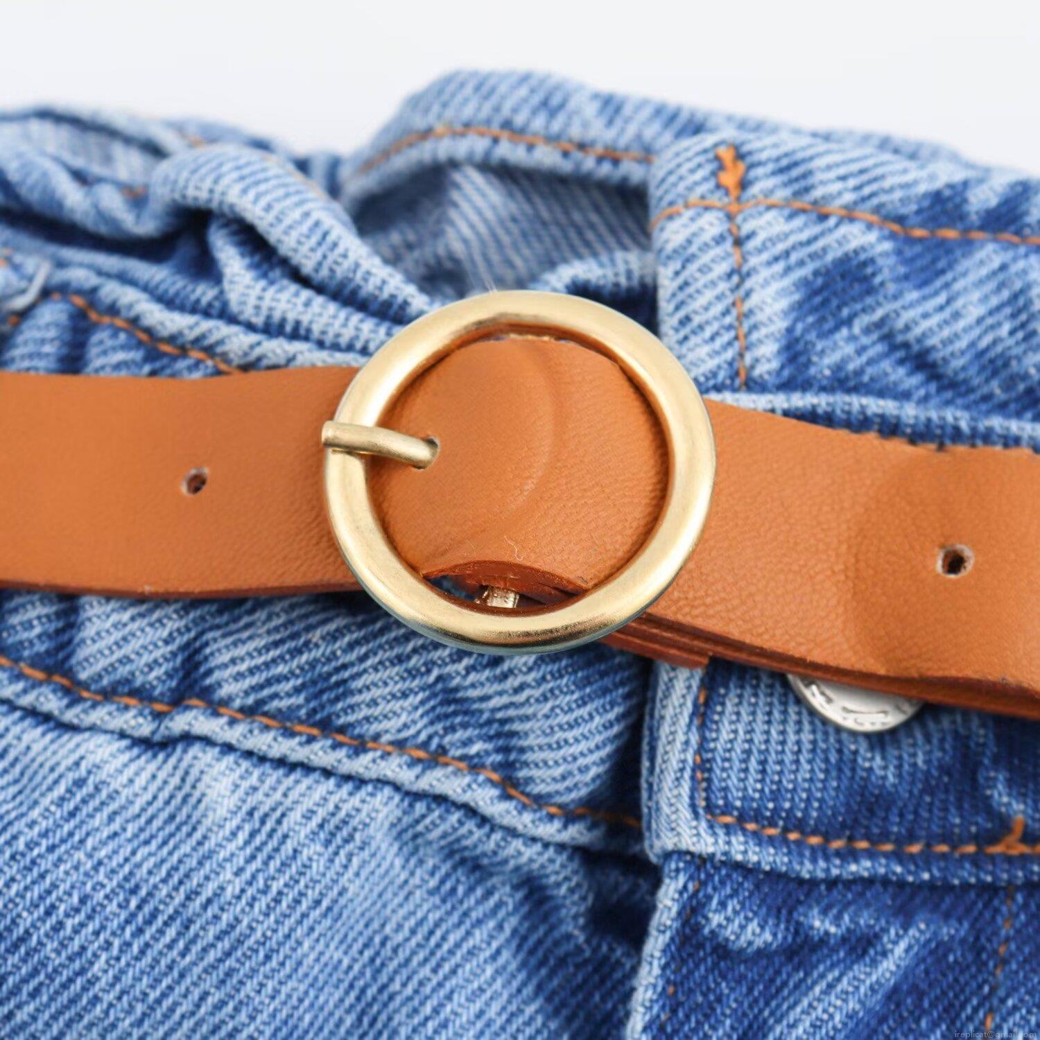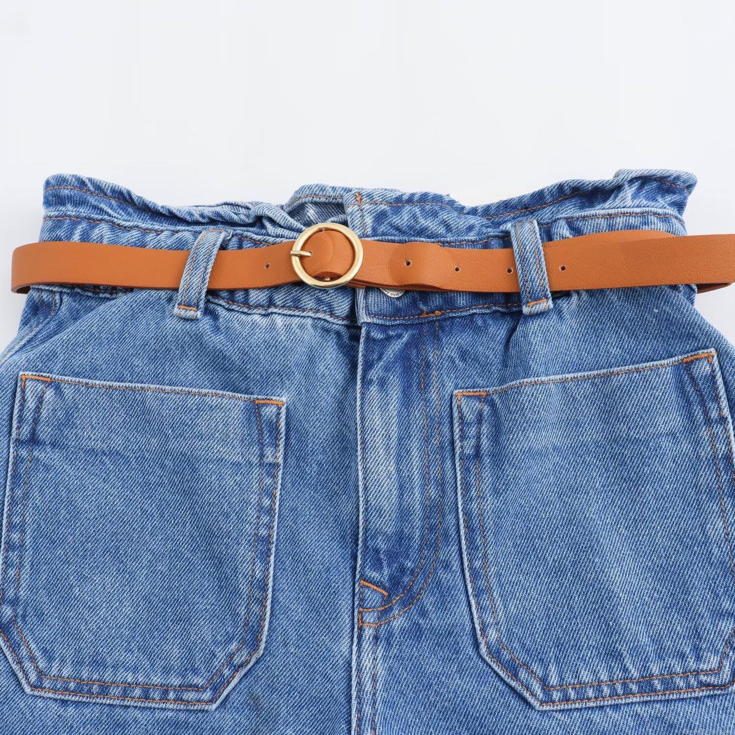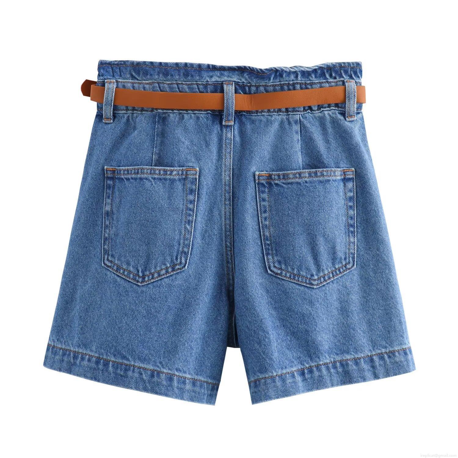 • Women's Casual High Waisted Denim Shorts With Belt Loose Fit Cotton Blend Jean Shorts For Summer Vacation Ladies Fashion Bottoms
