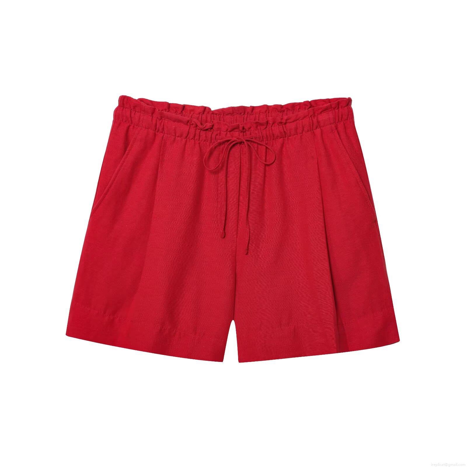 • Women's Casual Linen Blend Shorts Drawstring Elastic Waist With Side Pockets Sweet Loose Breathable Summer Beach Shorts For Women