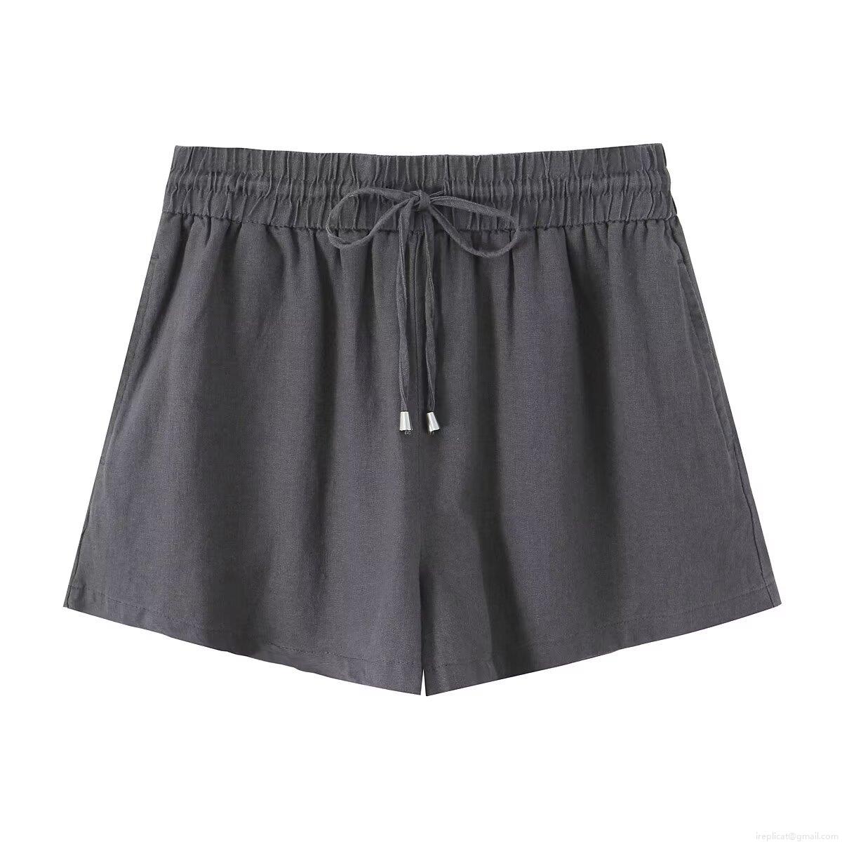 • Women's Casual Linen Blend Shorts High Waist Elastic Drawstring With Metal Tips Summer Beach Loose Fit Straight Leg Plain Shorts For Women