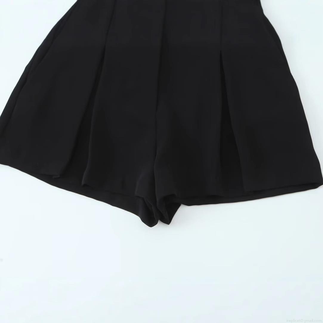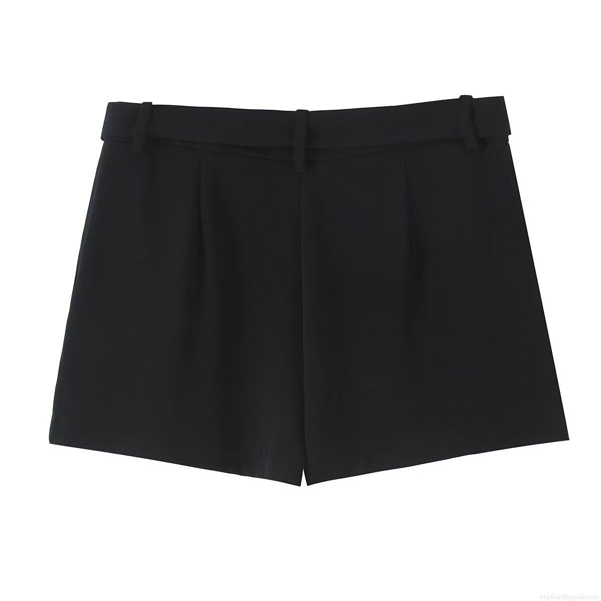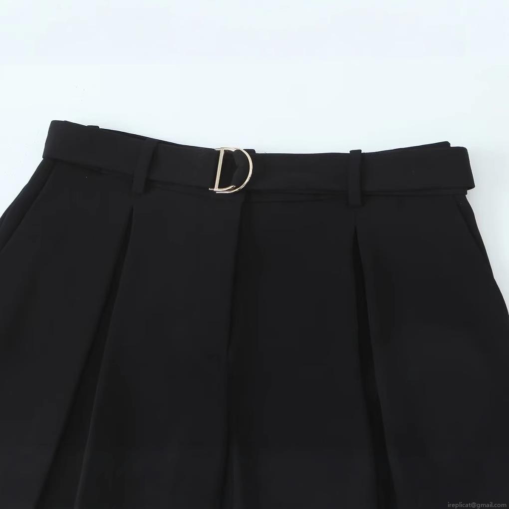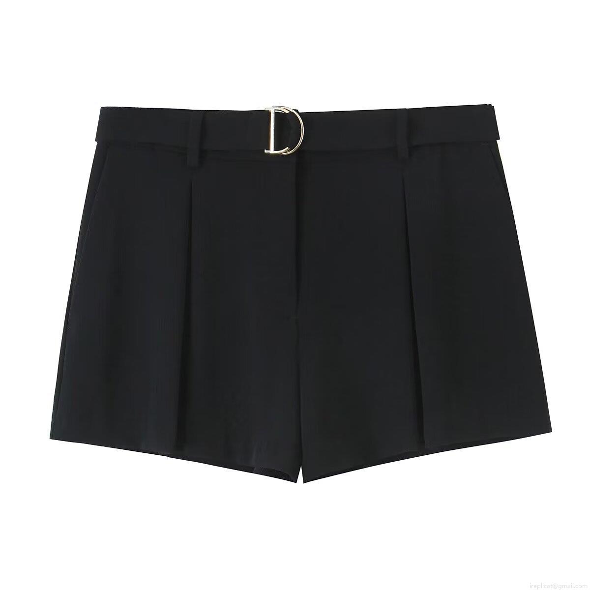 • Women's Casual Pleated Shorts High Waisted With Belt Gold Metal D Buckle Solid Color Breathable Wide Leg Summer Short Pants For Ladies