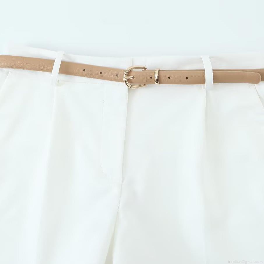 Women's Casual Pleated Shorts With Brown Belt Straight Leg Spandex Woven Summer Short Pants For Daily Office Wear