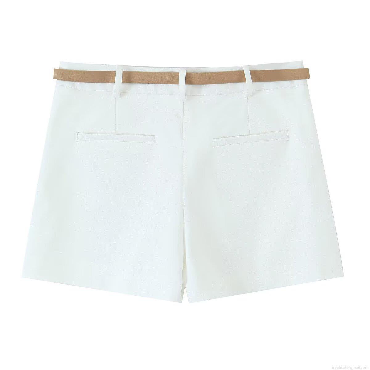 • Women's Casual Pleated Shorts With Brown Belt Straight Leg Spandex Woven Summer Short Pants For Daily Office Wear