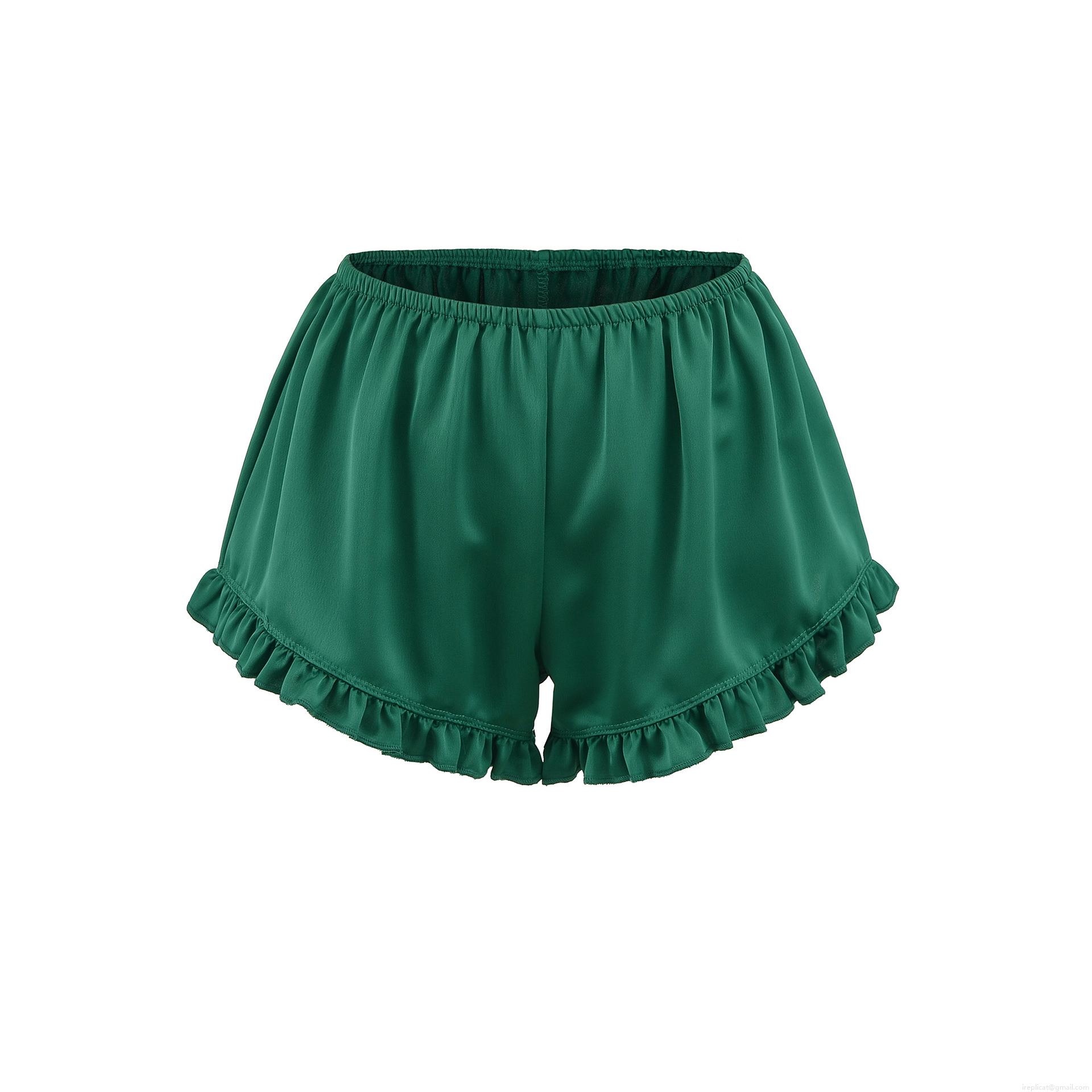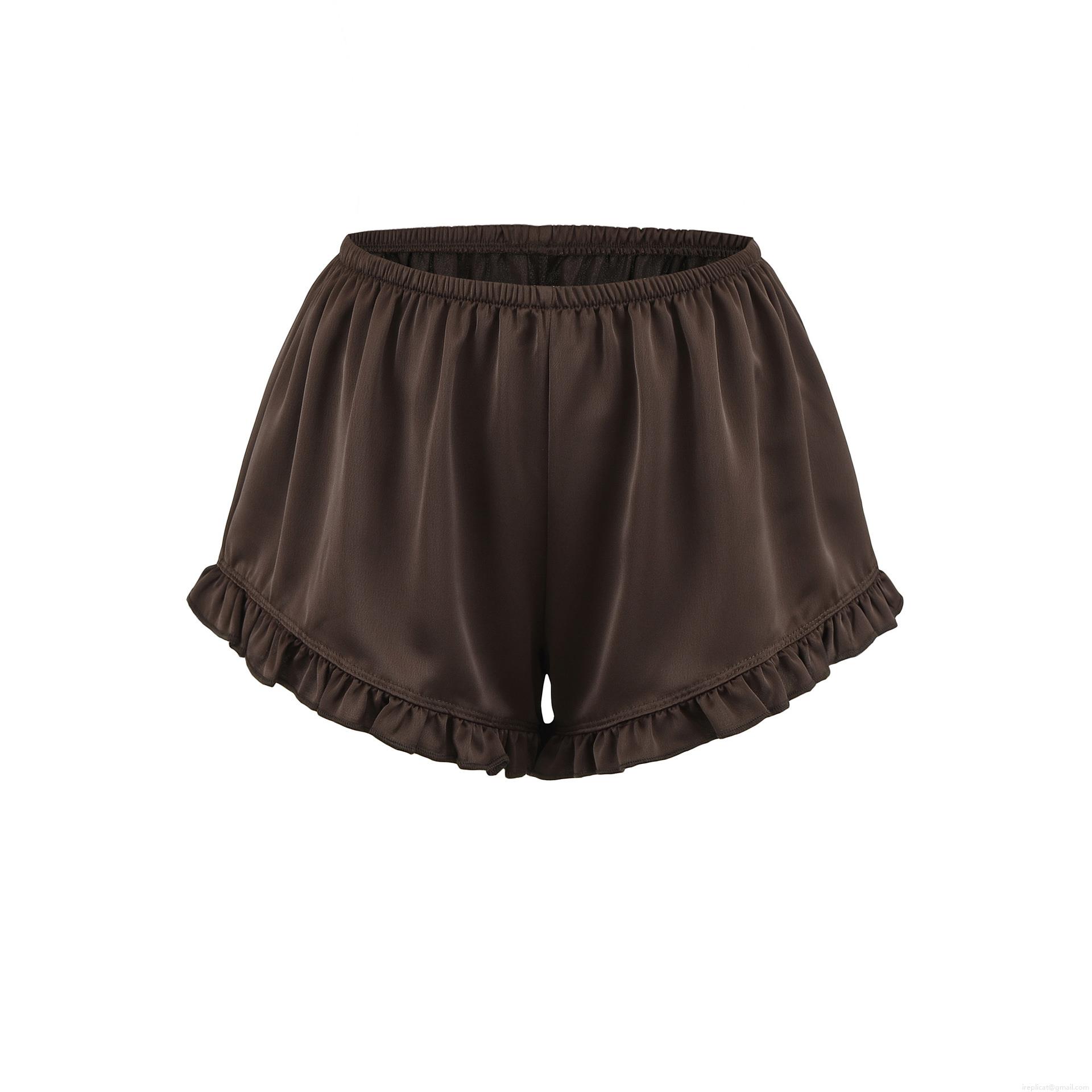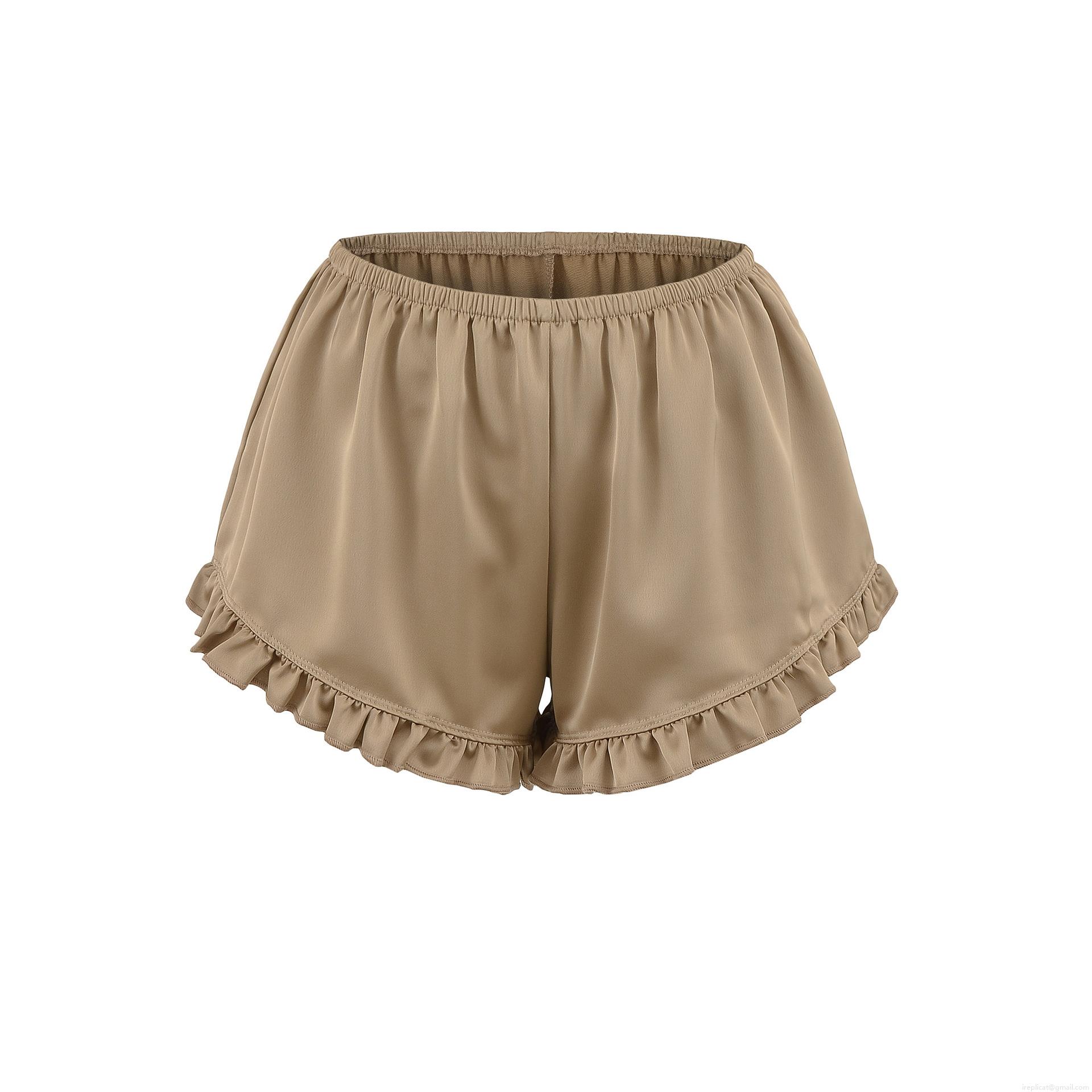 • Women's Casual Satin Shorts Elastic Waist Ruffle Hem Solid Color Polyester Blend Lounge Shorts For Summer Home Streetwear